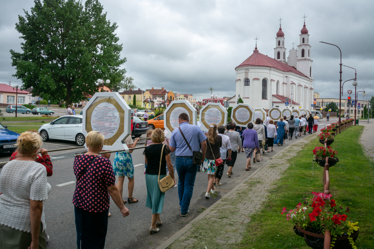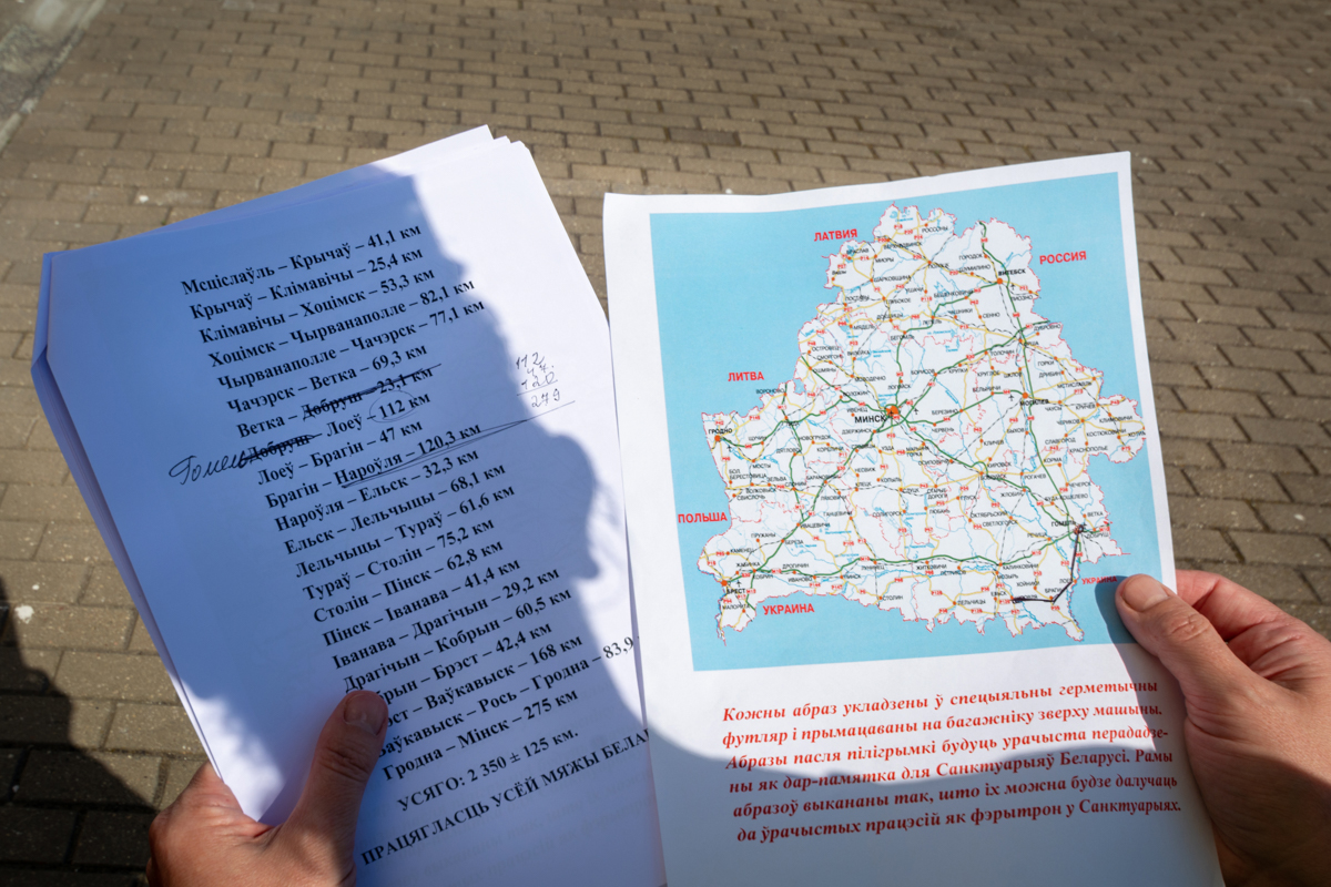 Wszystkie ikony namalowano w jednym rozmiarze i umieszczono w jednorodnych owalnych ramach, ze specjalnymi uchwytami do przenoszenia w procesji, a nawet przewożenia na dachach samochodu. Kopie zostały poświęcone 6 czerwca 2021 r. przez nuncjusza apostolskiego abp. Ante Jozicza a następnie wyruszyły w drogę wzdłuż granic Białorusi z intencją o ustanie pandemii i o jedność narodu białoruskiego.