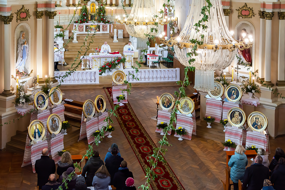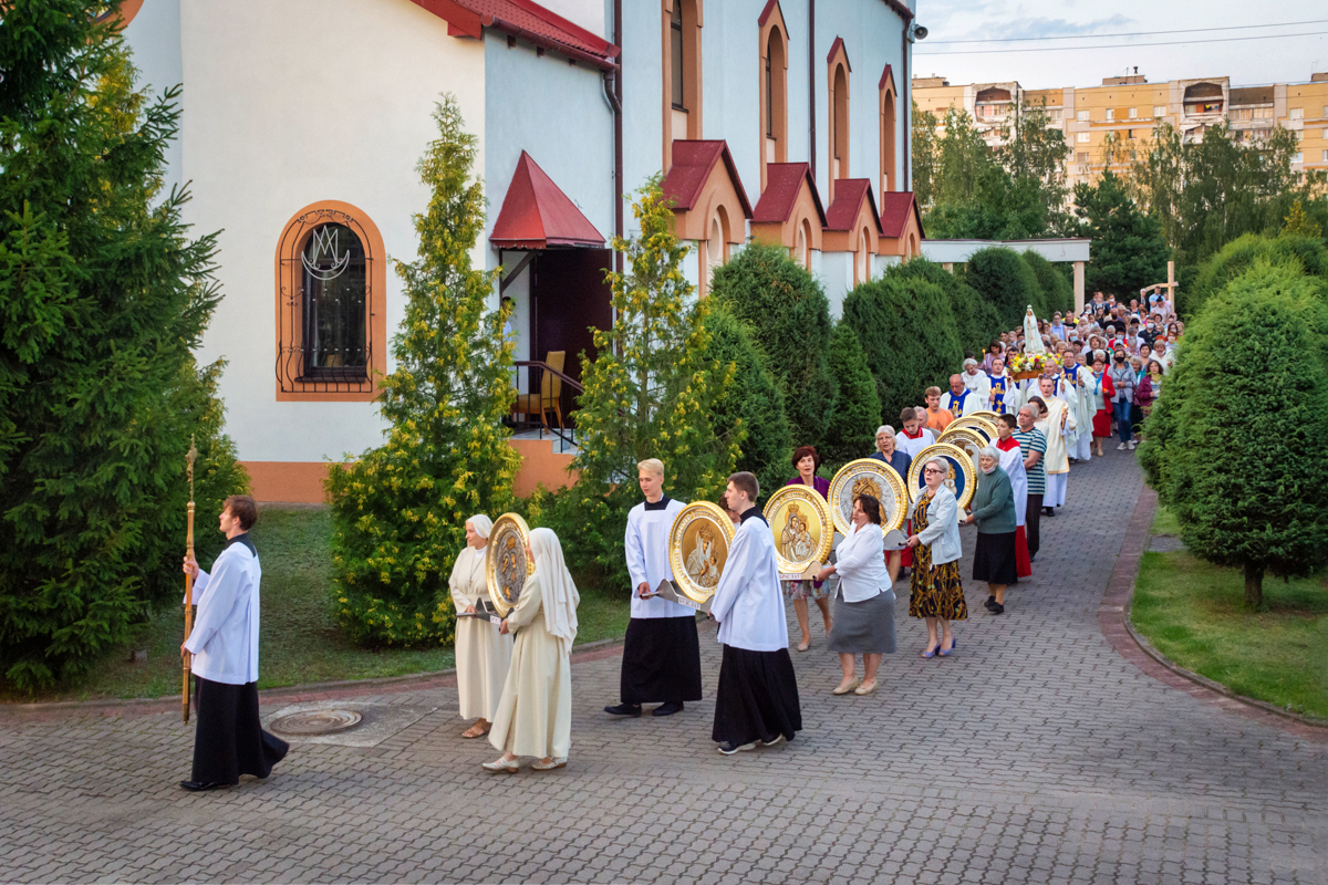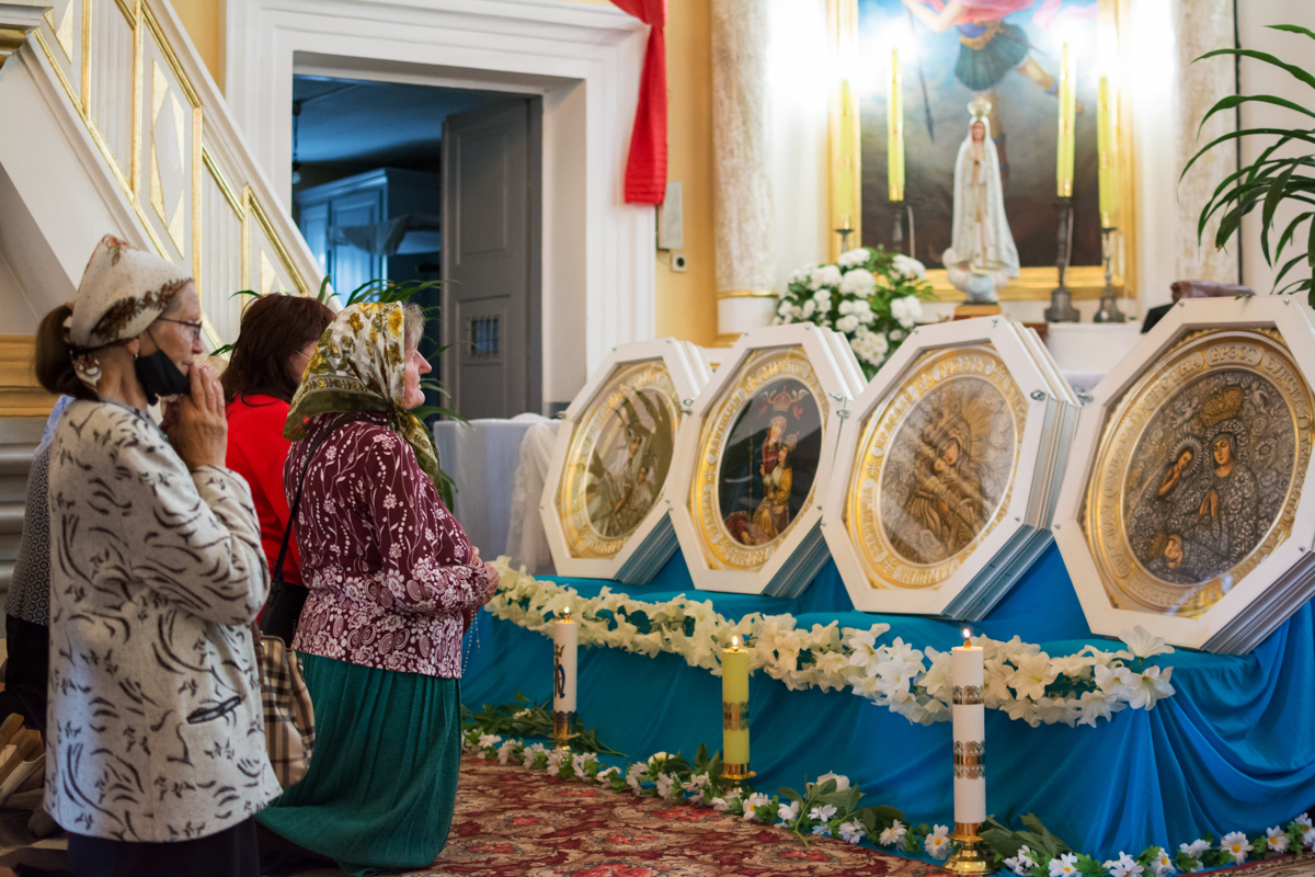 Gdy wybuchła pandemia, proboszcz ks. kanonik Władysław Zawalniuk postanowił, że jeśli nie można pielgrzymować do Maryi, to Maryja sama wyruszy w peregrynację po ziemi białoruskiej. Zlecił artystce Jadwidze Sieńko namalowanie kopii wizerunków Maryi czczonych w białoruskich sanktuariach.