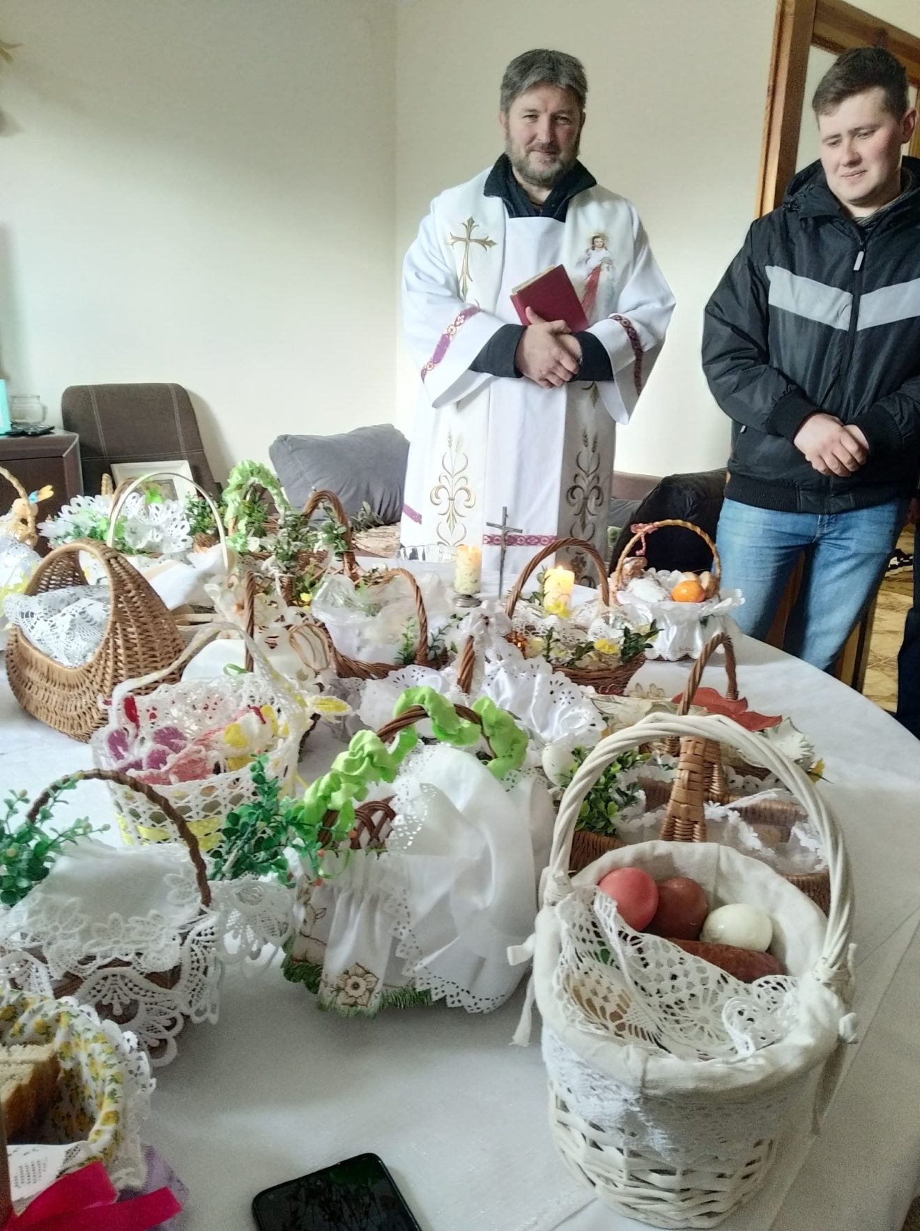 - parafia zorganizowała miejsca pobytu dla uchodźców z Ukrainy; w sumie przyjęto 4 rodziny, którym parafianie przekazali opał, żywność i meble;