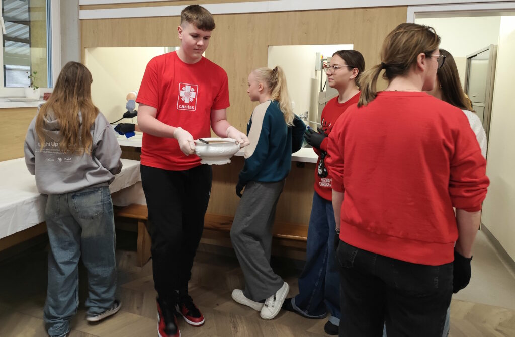 W obsługę zaangażowali się wolontariusze Caritas – młodzież ze Szkoły Podstawowej nr 10 im. Marii Konopnickiej w Kaliszu.