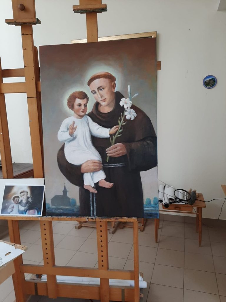 Obecnie trwa powrót do urządzania wnętrza: instalacja ogrzewania podłogowego, kładzenie płytek. Przygotowywane jest także obramowanie okien, okiennice. Część wyposażenia jest już gotowa: ławki, stoły, ołtarz, ambona. W kościele znajdą się także, tak jak w budynku sprzed 2017 r. , obrazy Matki Boskiej Częstochowskiej, patrona – św. Antoniego z Padwy oraz kopia obrazu Eugeniusza Kazimirowskiego – Jezus Miłosierny, który znajduje się w Wilnie. Autorem malowideł jest brat Bronisław Podsiadły, jezuita. Ojciec Krzysztof Korolczuk planuje także umieszczenie w kościele ryciny upamiętniającej tragiczną historię mieszkańców wioski z lat 1937-1938.