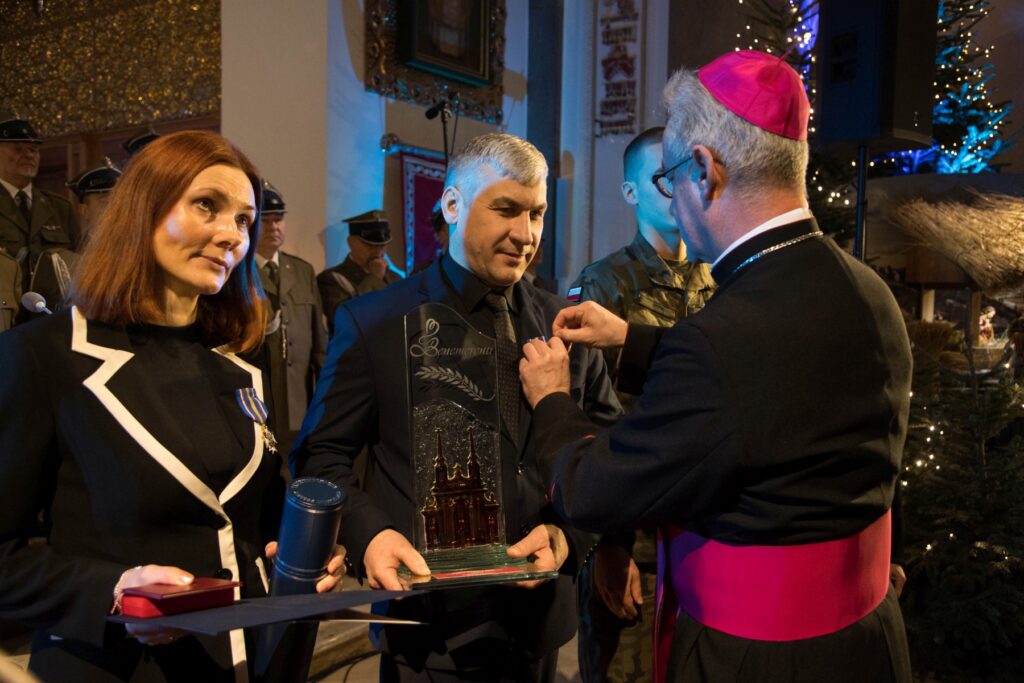 Fot. Krzysztof Stępkowski / Ordynariat PolowyWojska Obrony Terytorialnej, Fundacja Wspieram Cicho i Skutecznie oraz Emilia i Grzegorz Sitkowie, rodzice śp. sierżanta Mateusza Sitka zmarłego w wyniku ran zadanych przez migranta to tegoroczni laureaci Benemerenti – wyróżnień Ordynariatu Polowego. W katedrze polowej Wojska Polskiego odbył się koncert kolęd i pieśni noworocznych połączony z wręczeniem nagród. Ze specjalnym programem świątecznym wystąpiła Alicja Węgorzewska.