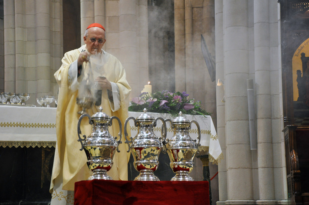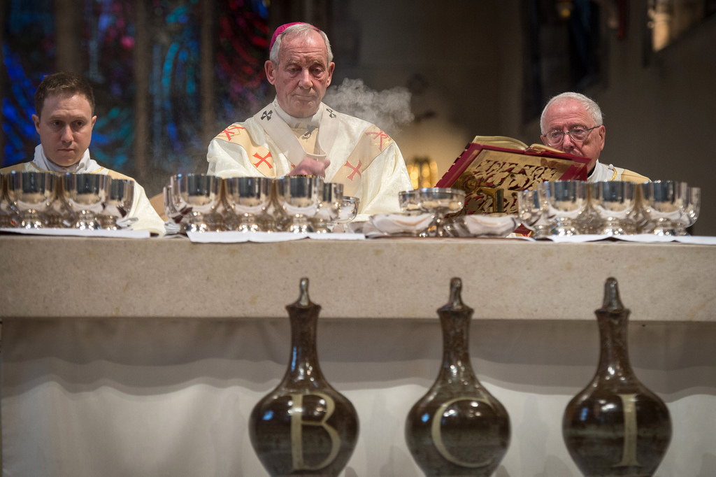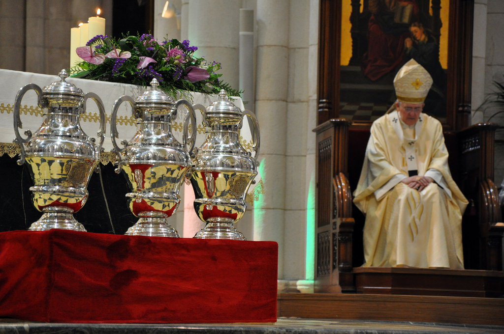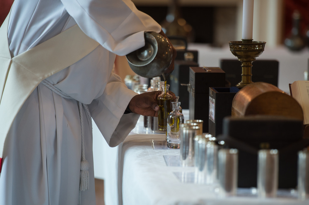 Wielki Czwartek jest szczególnym świętem kapłanów. Rankiem, jeszcze przed wieczornym rozpoczęciem Triduum Paschalnego, ma miejsce szczególna Msza św. We wszystkich kościołach katedralnych biskup diecezjalny wraz z kapłanami (nierzadko z całej diecezji) odprawia Mszę św. Krzyżma. Podczas niej biskup święci oleje (chorych i krzyżmo), które przez cały rok służą przy udzielaniu sakramentów chrztu, święceń kapłańskich, namaszczenia chorych. Kapłani koncelebrujący ze swoim biskupem odnawiają przyrzeczenia kapłańskie. Msza Krzyżma jest wyrazem jedności i wspólnoty duchowieństwa diecezji.