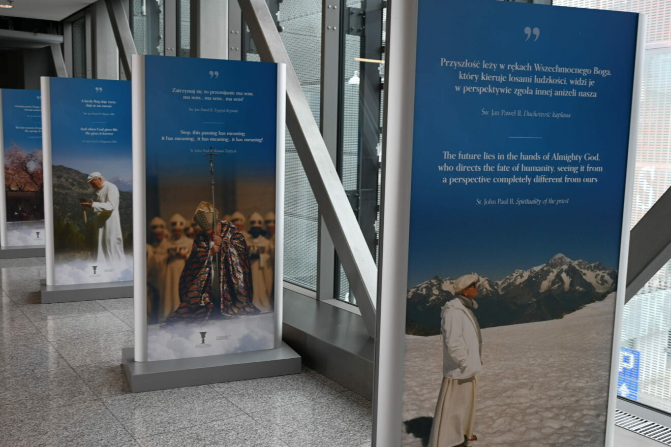 – Jesteśmy w przededniu 20. rocznicy śmierci św. Jana Pawła II. To ważne, że w ten sposób tutaj na lotnisku przypominamy naszym rodakom, ale i obywatelom całego świata o pontyfikacie następcy św. Piotra – mówił metropolita krakowski abp Marek Jędraszewski, który otworzył wystawę.