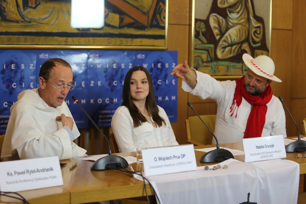 Uczestnicy konferencji prasowej poinformowali, że Mszy św. na Polach Lednickich, o godz. 20 przewodniczyć będzie Przewodniczący KEP, abp Stanisław Gądecki, zaś homilię wygłoszą wspólnie ojcowie dominikanie Piotr Frey i Rafał Szymko, znani z dominikańskiej serii „Chlebak”. Zaprosili też młodzież do kolejnej już akcji FISHMOB – spontanicznego ulicznego świętowania tańcem i muzyką, dla upamiętnienia Jana Pawła II w okolicy 18 maja, daty jego urodzin. Podkreślili, że FISHMOB ma być też formą zapraszania kolejnych młodych do udziału w spotkaniu na Polach Lednickich.