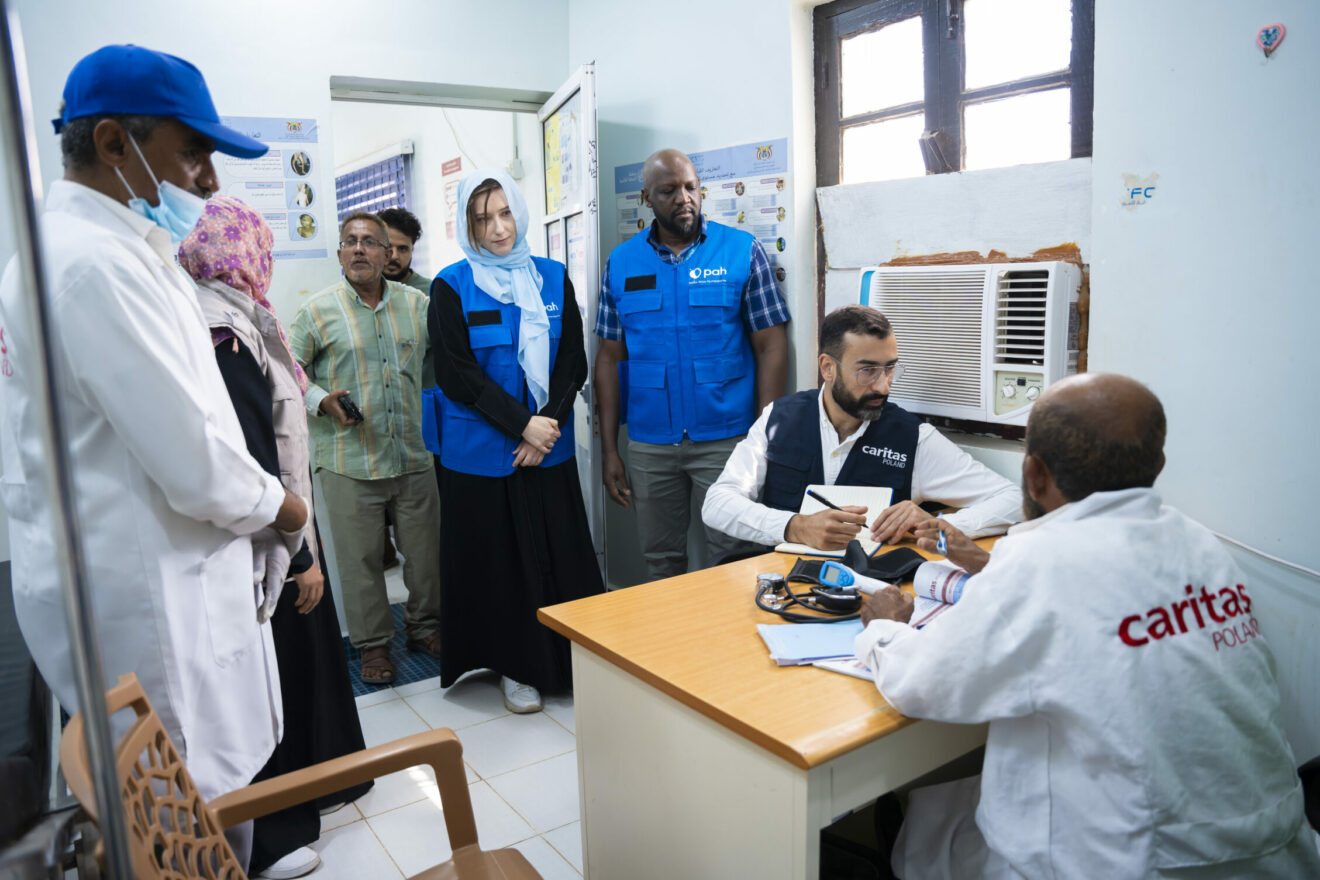 Caritas Polska i PAH to jedyne polskie organizacje, które działają w Jemenie bezpośrednio na miejscu. Współpracują ze sobą w Jemenie już od 2020 roku. PAH otworzyła swoje biuro w Adenie w 2019 roku, a 3 lata później stałe działania rozpoczęło biuro Caritas Polska. W ramach wspólnych działań organizacje realizowały m.in. projekty finansowane przez polskie Ministerstwo Spraw Zagranicznych. Polegały one na wsparciu szpitala w Rasad w zakresie świadczeń dla personelu, zakupu leków i wyposażenia (PAH) oraz zakupu mobilnych klinik wraz z wyposażeniem, lekami i świadczeniami dla ich załóg (CP). Przez lata współpracy udało się wesprzeć działanie wielu kolejnych ośrodków zdrowia na południu Jemenu oraz pomóc setkom tysięcy Jemenek i Jemeńczyków.