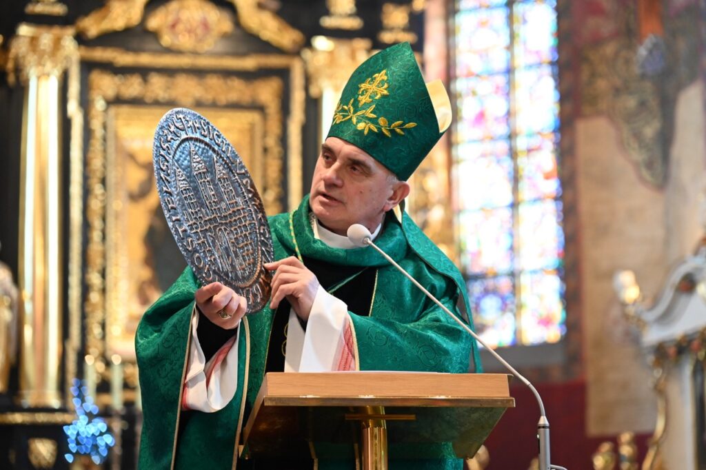 Duchowny zwrócił także uwagę na symbolikę herbu Bydgoszczy. Podczas homilii zaprezentował reprint pierwszej pieczęci miasta, na której widnieje krzyż. Przypomniał, że symbol ten przez niemal czterysta lat był obecny w herbie, a został z niego usunięty krótko przed II wojną światową. Biskup zaznaczył, że krzyż – jako centralny znak chrześcijaństwa – niesie przesłanie miłości Boga oraz nadziei, która wykracza poza doświadczenie śmierci, i może inspirować do postawy miłości ofiarnej i służby.