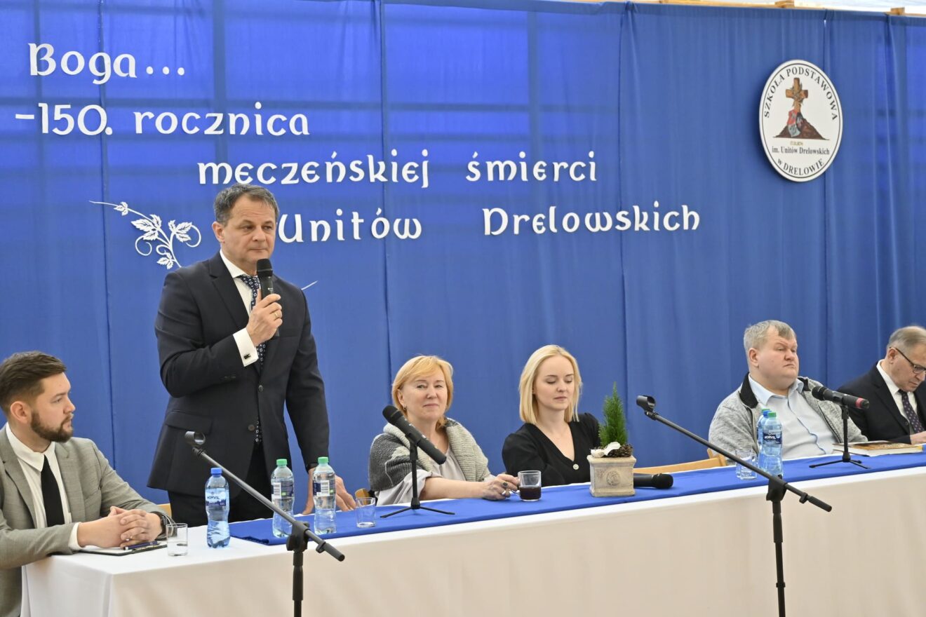 Eucharystię – która była sprawowana w kościele parafialnym, jedynym niemym świadku wydarzeń sprzed 150 lat – poprzedziło złożenie kwiatów przed tablicą upamiętniającą zdarzenia z 1874 r. We wspólnej modlitwie uczestniczyły delegacje szkół noszących imię Unitów Podlaskich, przedstawiciele władz samorządowych, parafianie i przybyli goście. Liturgia była momentem do dziękczynienia za świadectwo życia i wiary praojców. Dziękowano także za kultywowanie pamięci o Unitach Podlaskich przez społeczność w Drelowie.