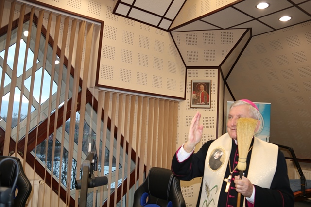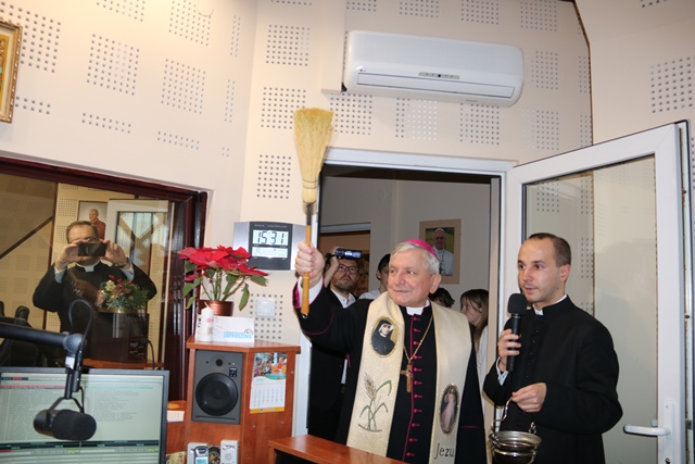 Z okazji 20. rocznicy istnienia Radia Rodzina Diecezji Kaliskiej pracownicy i sympatycy rozgłośni spotkali się dzisiaj w kaplicy radiowej, gdzie wraz z biskupem kaliskim Edwardem Janiakiem odmówili koronkę do Miłosierdzia Bożego. Biskup poświęcił także odnowione studio.