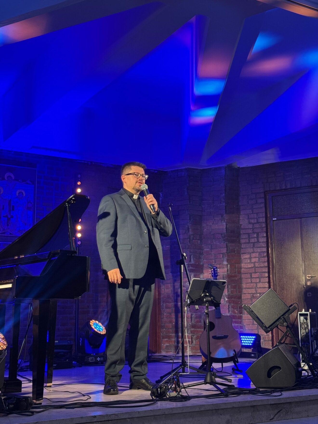 Ks. Łukasz Wiśniewski MIC w krótkiej przemowie dodał, że dzięki działalności Stowarzyszenia możliwa była także promocja modlitwy za zmarłych, co było szczególnym pragnieniem, założyciela marianów, św. Stanisława Papczyńskiego.