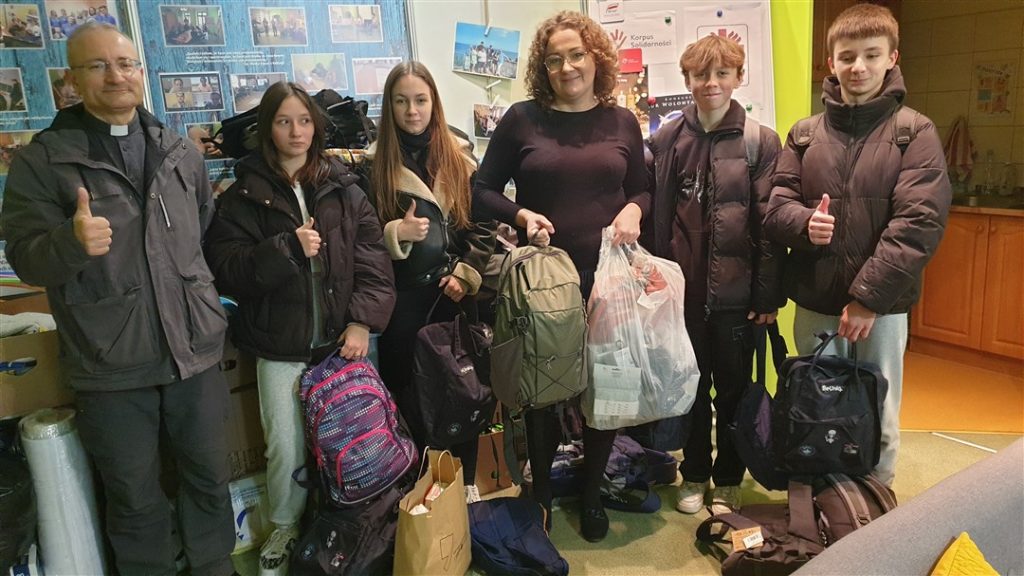 Z gotowych plecaków oraz luzem zebranych artykułów przygotowano 300 plecaków, w których znalazły się: termos, ciepłe skarpetki, czapka, rękawiczki, szalik, latarka, plastry opatrunkowe, chusteczki nawilżane i higieniczne oraz konserwa i słodycze.