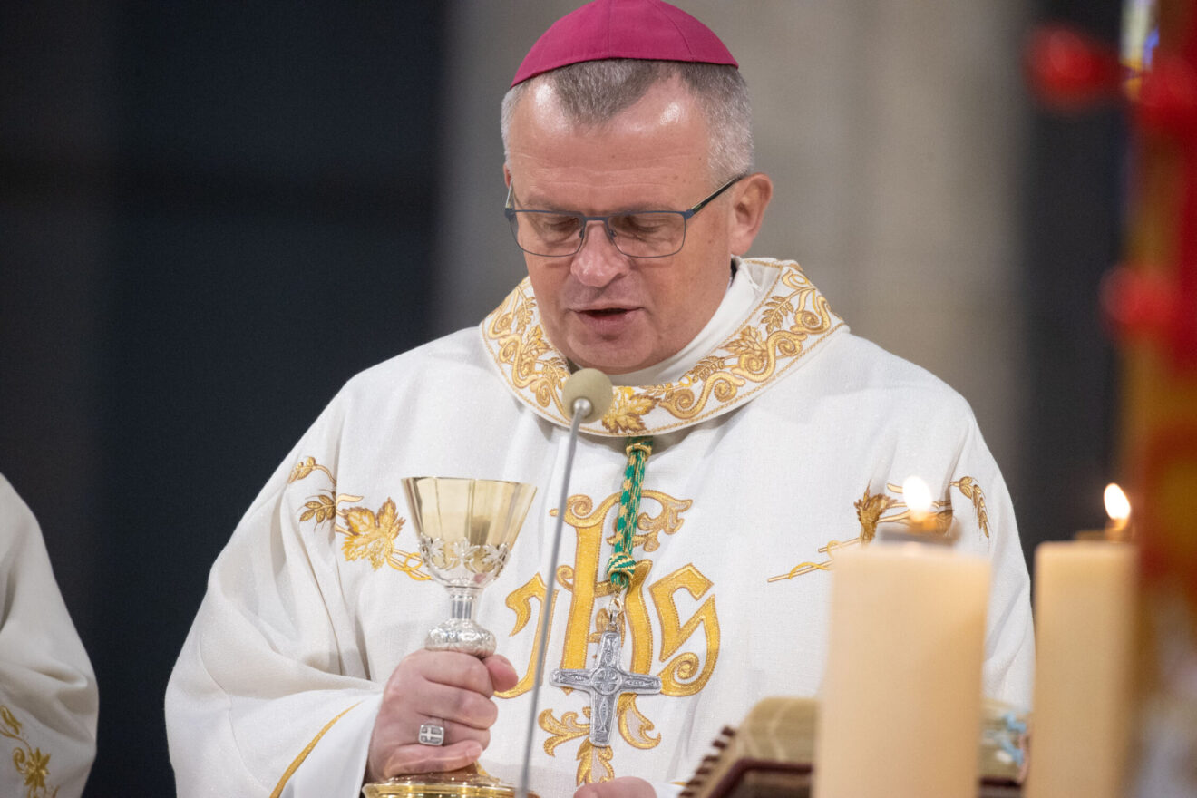 Fot. ks. Paweł KłysBóg staje się nie tylko człowiekiem, ale kawałkiem materii, żeby przyjść do mnie! On zachęca mnie do takiej miłości – nie tylko do Pana Boga, ale również do człowieka, który jest obok mnie – powiedział bp Zbigniew Wołkowicz podczas liturgii, w czasie której pobłogosławił 65 nowych nadzwyczajnych szafarzy Komunii Świętej.
