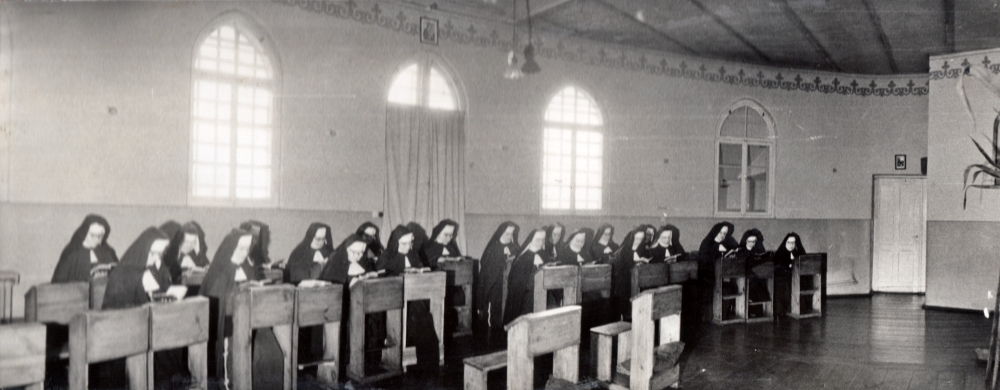 „Odpowiadając na potrzeby powojennego czasu, nie mając jeszcze zamkniętej klauzury ani nawet nie zajmując właściwego lokum, lecz pomieszkując w budynku plebanii, siostry, na prośbę ks. Chmielewskiego, prowadziły ochronkę dla dzieci, mały sierociniec. W końcu sierpnia 1950 r. mniszki były zmuszone zamknąć ochronkę ze względu na utrudnienia ze strony władz państwowych (m.in. zakaz nauczania religii)” – zaznacza s. Teresa.