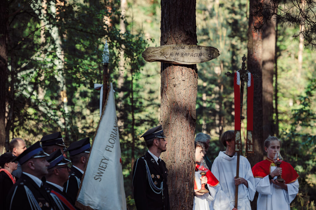 Fot. Piotr TumidajskiNa miesiąc przed beatyfikacją, jak co roku mieszkańcy i parafianie zebrali się przy miejscu męczeńskiej śmierci ks. Rapacza w pobliskim lesie, złożone zostały kwiaty, odmówiona koronka do Bożego Miłosierdzia a w procesji powrotnej odśpiewana Litania loretańska. Uroczystościom przewodniczył nowy proboszcz ks. Tadeusz Tylka.