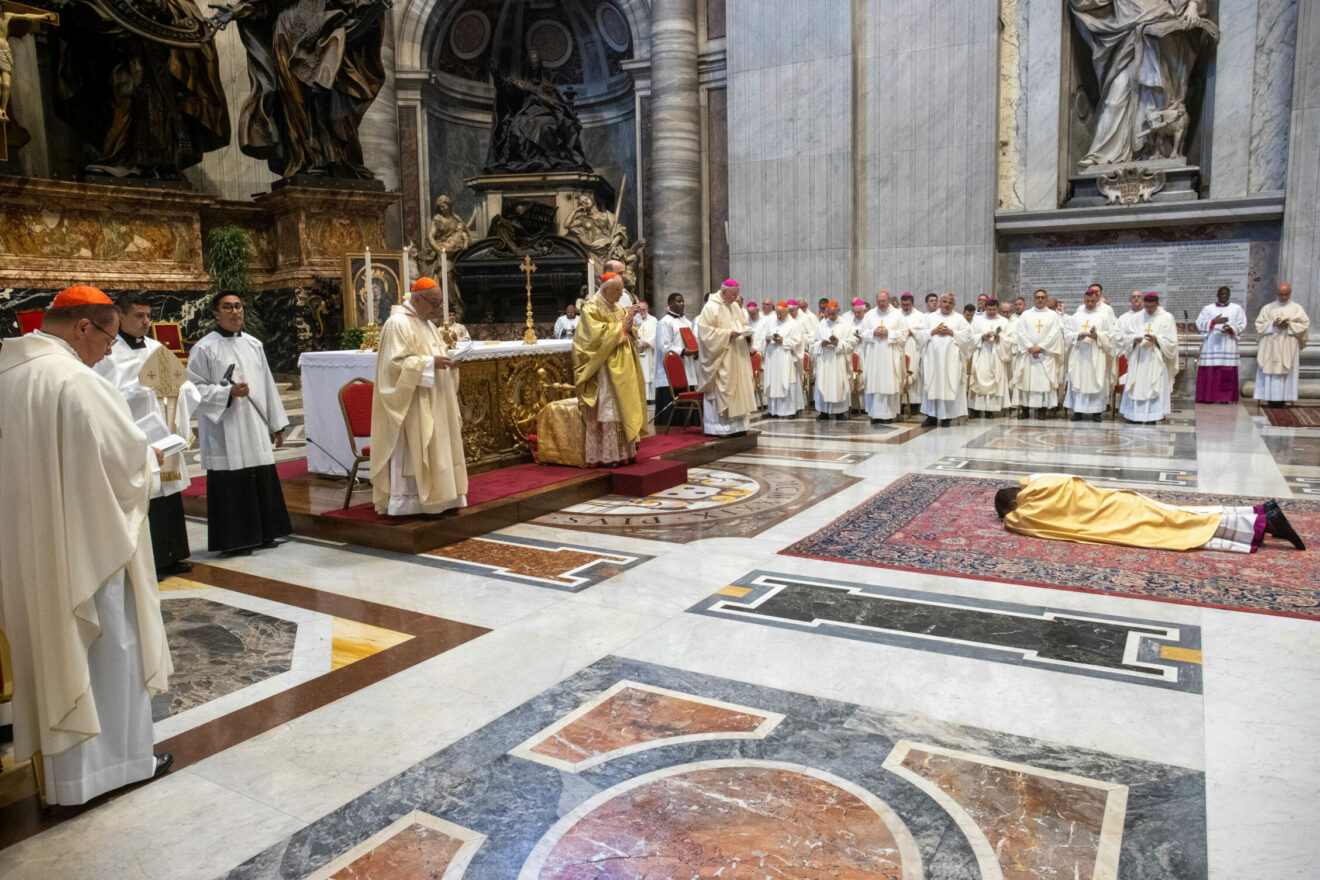 Zgodnie z tradycją, na początku obrzędu Święceń odśpiewano hymn „Veni, creator Spiritus”, przedstawiono kandydata do Święceń i odczytano Bullę Papieską, w której Ojciec Święty Franciszek zwraca się do nominata w tych słowach:
