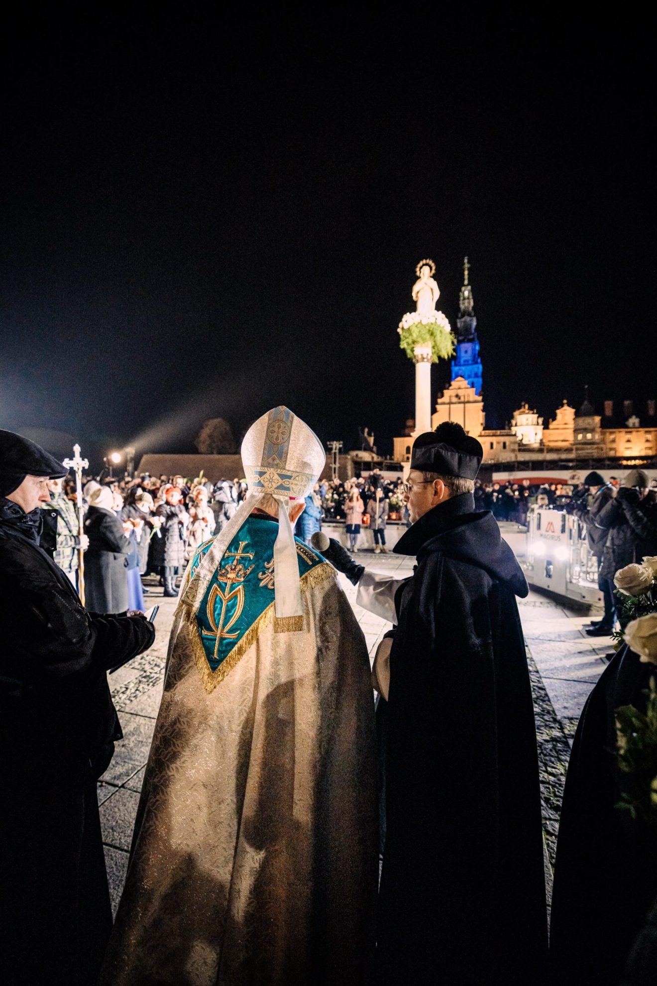 Metropolita częstochowski modlił się, by Maryja broniła od nienawiści społecznej, wszelkich form zniewolenia poprzez sączące się kłamstwa, zwłaszcza wobec posługi św. Jana Pawła II. – Maryjo, gdy za naszą granicą toczy się brutalna wojna, pomóż nam ratować siebie i świat od wszelkiej przemocy, od powietrza, głodu, ognia i wojny, od nagłej i niespodziewanej śmierci, wybaw nas! – modlił się metropolita częstochowski na jasnogórskim placu.