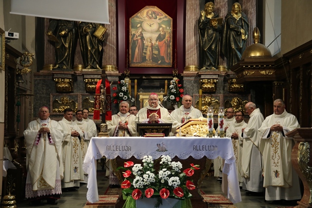 Wskazał, że II wojna światowa doprowadziła do milionów ludzkich tragedii, a w sposób szczególny prześladowana była religia i wiara. – Ukoronowaniem tego pasma cierpień kapłanów i innych ludzi w Polsce była beatyfikacja 108 męczenników II wojny światowej dokonana przez Jana Pawła II w Warszawie w dniu 13 czerwca 1999 r. Mamy więc orędowników w niebie, do których możemy zwracać się z prośbą, by wypraszali łaski dla Kościoła, dla wiernego ludu, by wypraszać dla niego męstwo w wyznawaniu wiary w czasach epidemii i śmierci wielu braci – mówił hierarcha.