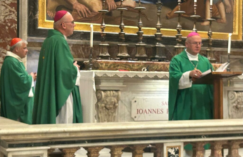 Fot. ks. Paweł Rytel-Andrianik / @VaticanNewsJest to i powinien być trud, ale pracy nad sobą. To nie jest praca, którą mamy wykonać nad Panem Bogiem, ale praca niezwykle ważna, praca nad sobą – powiedział o modlitwie metropolita warmiński abp Józef Górzyński, podczas Mszy św. sprawowanej w czwartek rano przy grobie św. Jana Pawła II w bazylice św. Piotra w Watykanie.