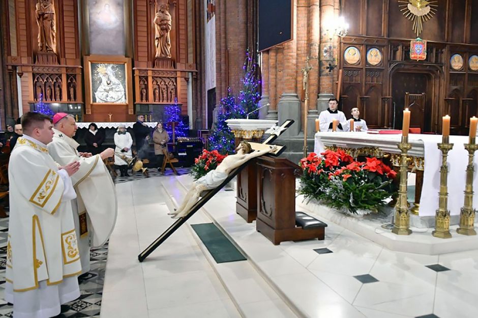 Fot. © Robert Ostrowski / archibial.pl„Na początku Roku Jubileuszowego Bóg ponownie ukazuje swoje miłosierne oblicze i przypomina, że nie przyszedł na świat, aby kogokolwiek potępić, ale pragnie zbawienia wszystkich ludzi. Brama miłosierdzia została otwarta, ale potrzebne są jeszcze nasza decyzja i podjęcie trudu nawrócenia” – mówił abp Józef Guzdek inaugurując Rok Jubileuszowy 2025 w archidiecezji białostockiej. Przed uroczystą Mszą św. do białostockiej archikatedry został wniesiony krzyż jubileuszowy, który pozostanie w niej przez cały Rok Święty.