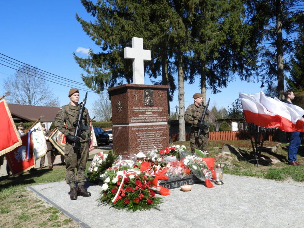 Po Mszy św. wszyscy udali się pod pomnik przy ul. Pałacowej, gdzie wartę honorową pełnili żołnierze I Podlaskiej Brygady Obrony Terytorialnej. Po odśpiewaniu hymnu państwowego głos zabrali wójt Gminy Białowieża Albert Litwinowicz oraz senator Anna Bogucka.