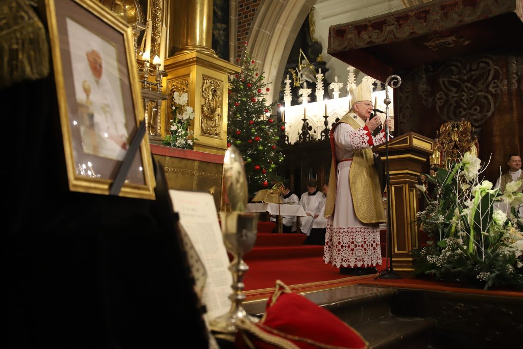 Nawiązując do Prologu z Ewangelii św. Jana abp Jędraszewski powiedział: – Nie ulega wątpliwości, że do tych ludzi, którzy stali się z woli Boga prawdziwie dziećmi Bożymi, którzy „z Boga się narodzili”, należy powołany dzisiejszego ranka do wieczności Ojciec Święty Benedykt XVI. Przyznał, że trudnym zadaniem jest przedstawić w krótkim rozważaniu wielkość jego postaci i zasług dla współczesnego Kościoła. – Nie ulega wątpliwości, że był to człowiek trzech cnót teologalnych: wiary, nadziei i miłości. Cnót, które głosił światu i które stawały się treścią jego bardzo skromnego, pokornego, ale także jednoznacznego w swym przesłaniu życia – zauważył.