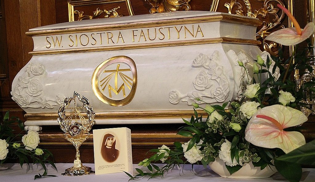 Do figurki przymocowany jest relikwiarz zawierający cząstkę kości (ex ossibus) zakonnicy. Relikwie zostały przekazane przez Zgromadzenie Sióstr Matki Bożej Miłosierdzia, do którego należała św. s. Faustyna.