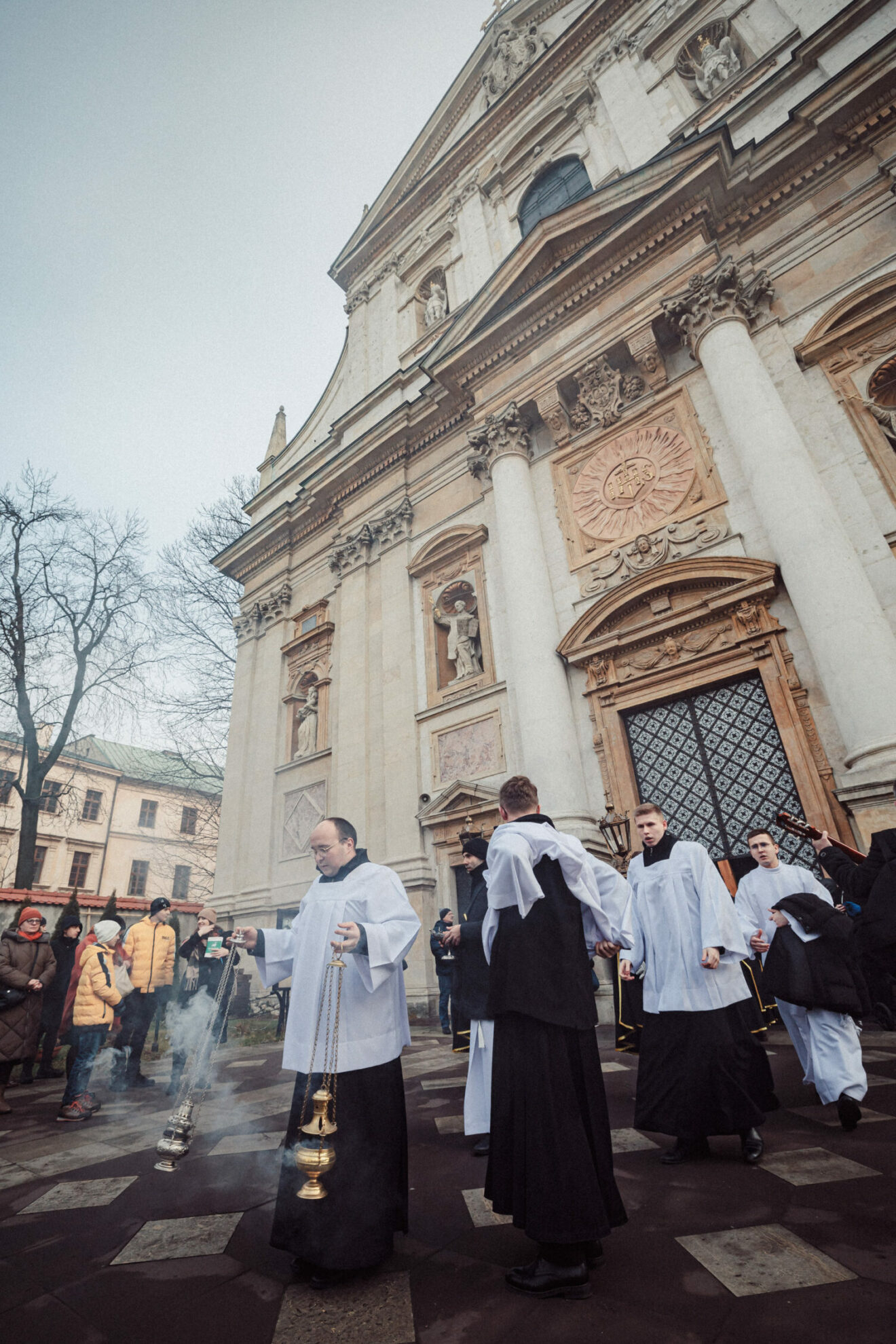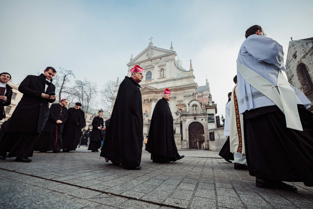 O godz. 10.30 w kościele Apostołów Piotra i Pawła w Krakowie, rozpoczęła się uroczysta liturgia z okazji otwarcia Roku Jubileuszowego w Archidiecezji Krakowskiej. Przewodniczył jej abp Marek Jędraszewski, a uczestniczyli w niej nuncjusz apostolski w Polsce abp Salvatore Pennacchio i krakowscy biskupi pomocniczy bp Damian Muskus OFM, bp Janusz Mastalski, bp Robert Chrząszcz a także przedstawiciele wszystkich dekanatów i parafii archidiecezji. Na początku odśpiewano hymn Jubileuszu „Pielgrzymi nadziei”. Po odczytaniu Ewangelii i fragmentu bulli ogłaszającej Zwyczajny Jubileusz Spes non confundit wyruszyła procesja w kierunku wzgórza wawelskiego. U progu katedry arcybiskup wezwał wszystkich do oddania czci krzyżowi.