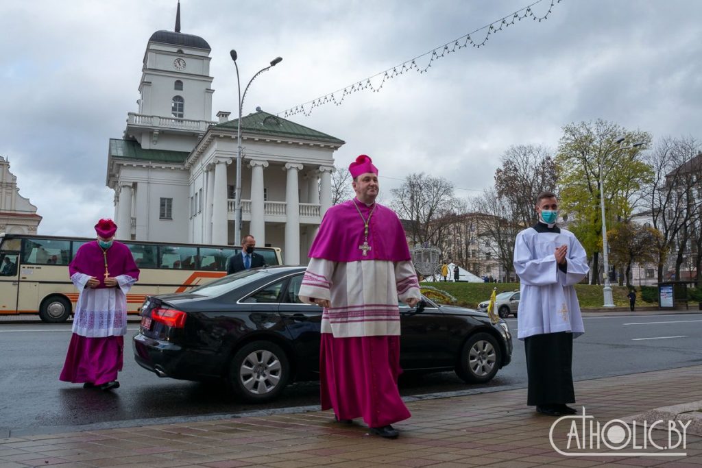 Przybyłego do świątyni nowego arcybiskupa i nuncjusza apostolskiego na Białorusi abp. Ante Jozicia powitali przed wejściem metropolita-senior abp Tadeusz Kondrusiewicz i dotychczasowy administrator apostolski bp Kazimierz Wielikosielec. Następnie rozpoczęła się Msza św. pod przewodnictwem dyplomaty papieskiego.