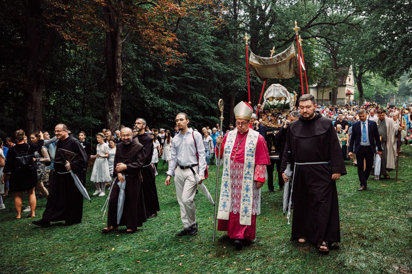 Zakończył modlitwą „Zdrowaś Maryjo” z akcentem położnym na ostatnie słowa: „Święta Maryjo, Matko Boża, módl się za nami grzesznymi teraz i w godzinie śmierci naszej”. – Kalwaria, to sanktuarium, żyje dzięki Jezusowi, dzięki Maryi i dzięki wam – mówił do pielgrzymów zgromadzonych na uroczystościach w Brodach minister prowincjalny o. Egidiusz Włodarczyk OFM. – Powiem wam w sekrecie, że nawet kiedy wyjeżdżacie już z Kalwarii, wracacie do swoich domów zostawiwszy tutaj swoje intencje, swoje troski, to wasz śpiew ciągle tutaj brzmi, między górami i drzewami, ciągle słychać tutaj szept waszej modlitwy i ciszę, w której Bóg wsłuchuje się w to wszystko, co chcecie mu zawierzać – dodawał.