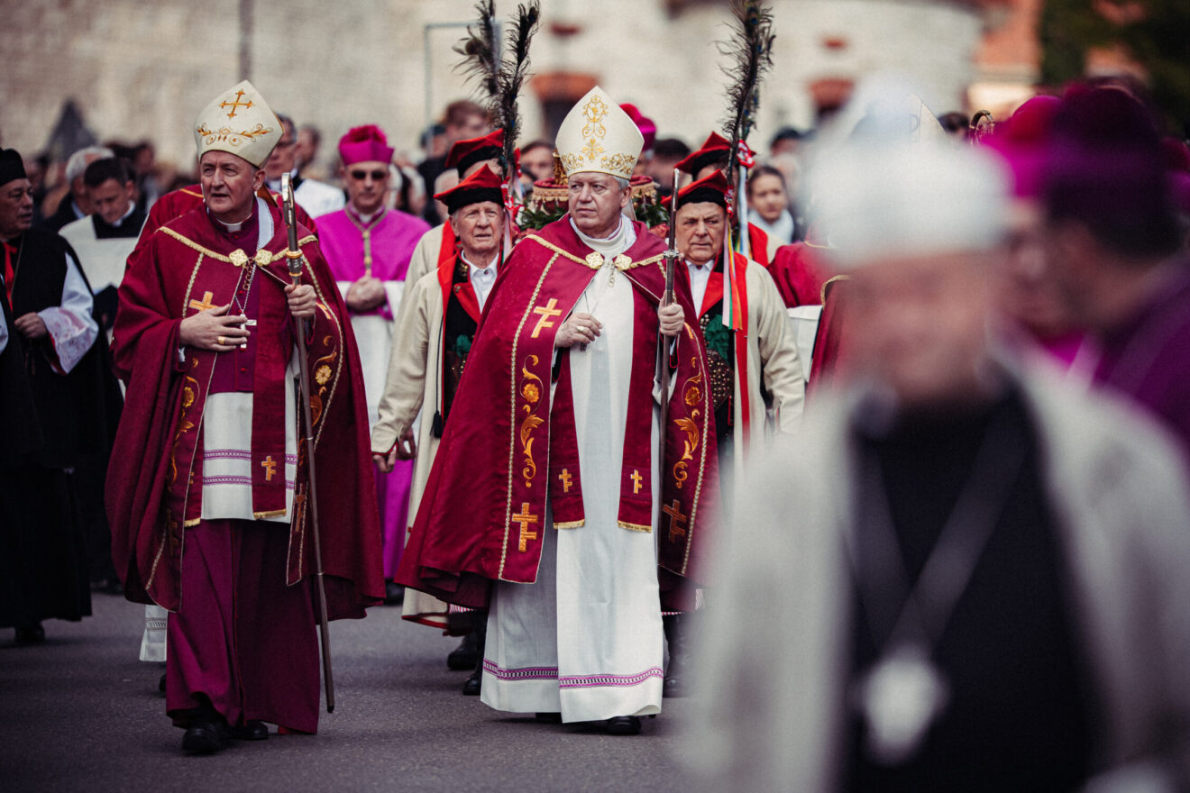 Wskazał na ogromną rzeszę świętych, którzy ukształtowali Polskę i historię krakowskiego Kościoła. Wymienił wśród nich pasterzy: św. Stanisława, Biskupa i Męczennika, św. Jana Kantego, św. Stanisława Kazimierczyka, św. Jana Pawła II, bł. Wincentego Kadłubka, bł. ks. Michała Rapacza, osoby konsekrowane: św. Kingę, św. Faustynę Kowalską, św. Brata Alberta Chmielowskiego, bł. Matkę Zofię Czeską, bł. Michała Giedroycia, a także wiernych świeckich: św. Kazimierza Jagiellończyka, św. Jadwigę Królową, bł. Hannę Chrzanowską i bł. Anielę Salawę. – Wszyscy ci święci mieli wspólną cechę, że pomimo prób, jakich doświadczyli w swoim życiu, pozostali w bliskiej łączności z osobą Jezusa Chrystusa. On jest w swojej osobie łaską Bożą – zauważył i w tym kontekście przywołał słowa św. Jana Pawła II z jego pierwszej podróży apostolskiej do Polski: „Wyłączenie Chrystusa z dziejów człowieka jest aktem wymierzonym przeciwko człowiekowi. Nie można też bez Chrystusa zrozumieć dziejów Polski, przede wszystkim jako dziejów ludzi, którzy przeszli i przechodzą przez tę ziemię”.