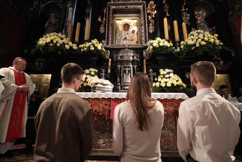 – Kiedy tutaj stoimy przed Matką Bożą, kiedy patrzymy Jej w oczy, to człowiek staje taki, jakim faktycznie jest. Jak to jest niesamowicie ważne – mówił biskup. Podkreślał, że ważne jest też to, żebyśmy potrafili mieć obok siebie tych, wobec których możemy być po prostu sobą. – Tego życzymy młodym i o to się starajmy, żebyśmy potrafili dla tych, których Pan Bóg stawia obok nas, być świadkiem otwartości, szczerości, zrozumienia, przyjęcia – podkreślał bp Solarczyk.