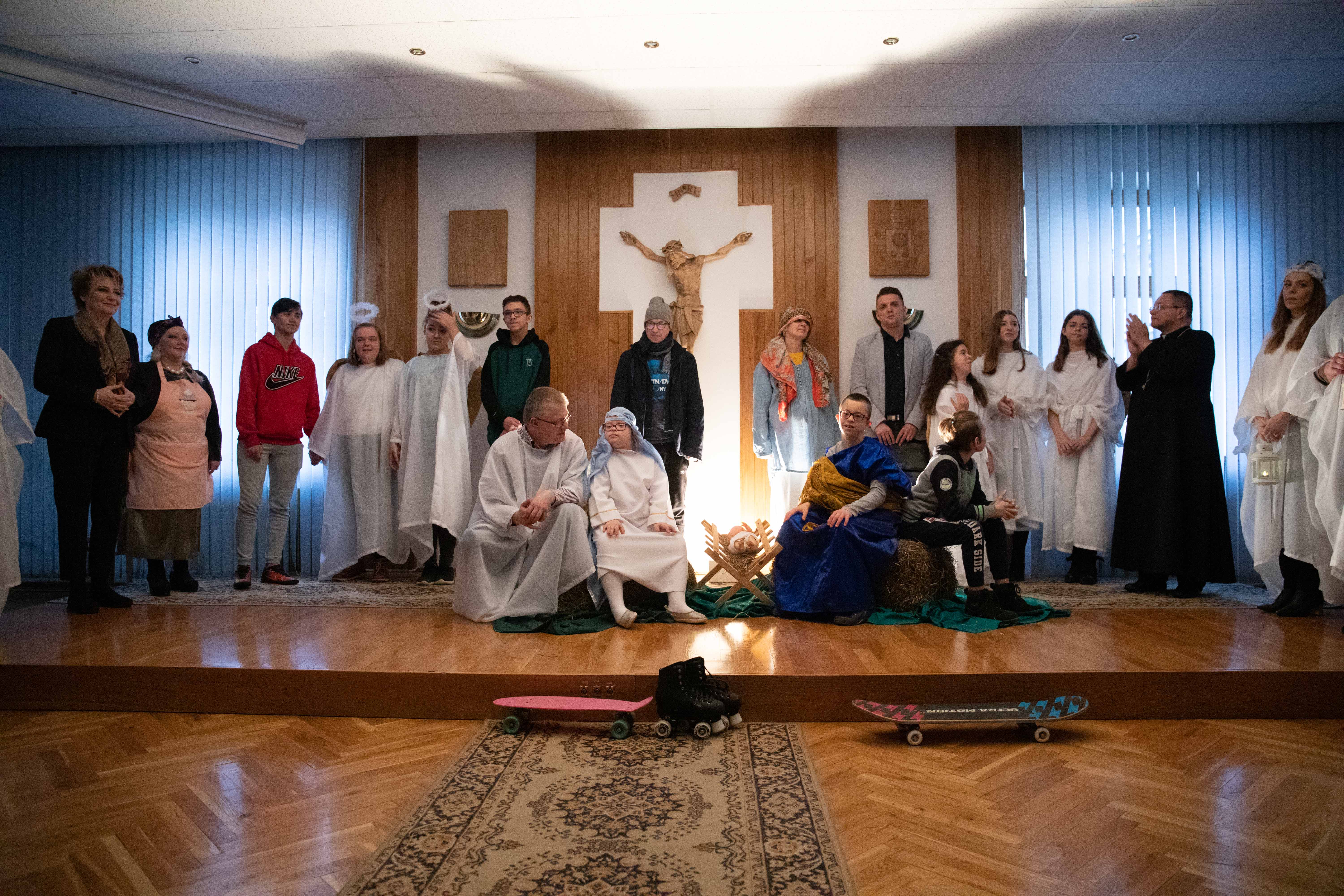 Obok życzeń uczestnicy spotkania świątecznego obejrzeli jasełka przygotowane przez nauczycieli, pracowników obsługi, rodziców i uczniów z Zespołu Szkół Specjalnych nr. 2 w Łodzi.