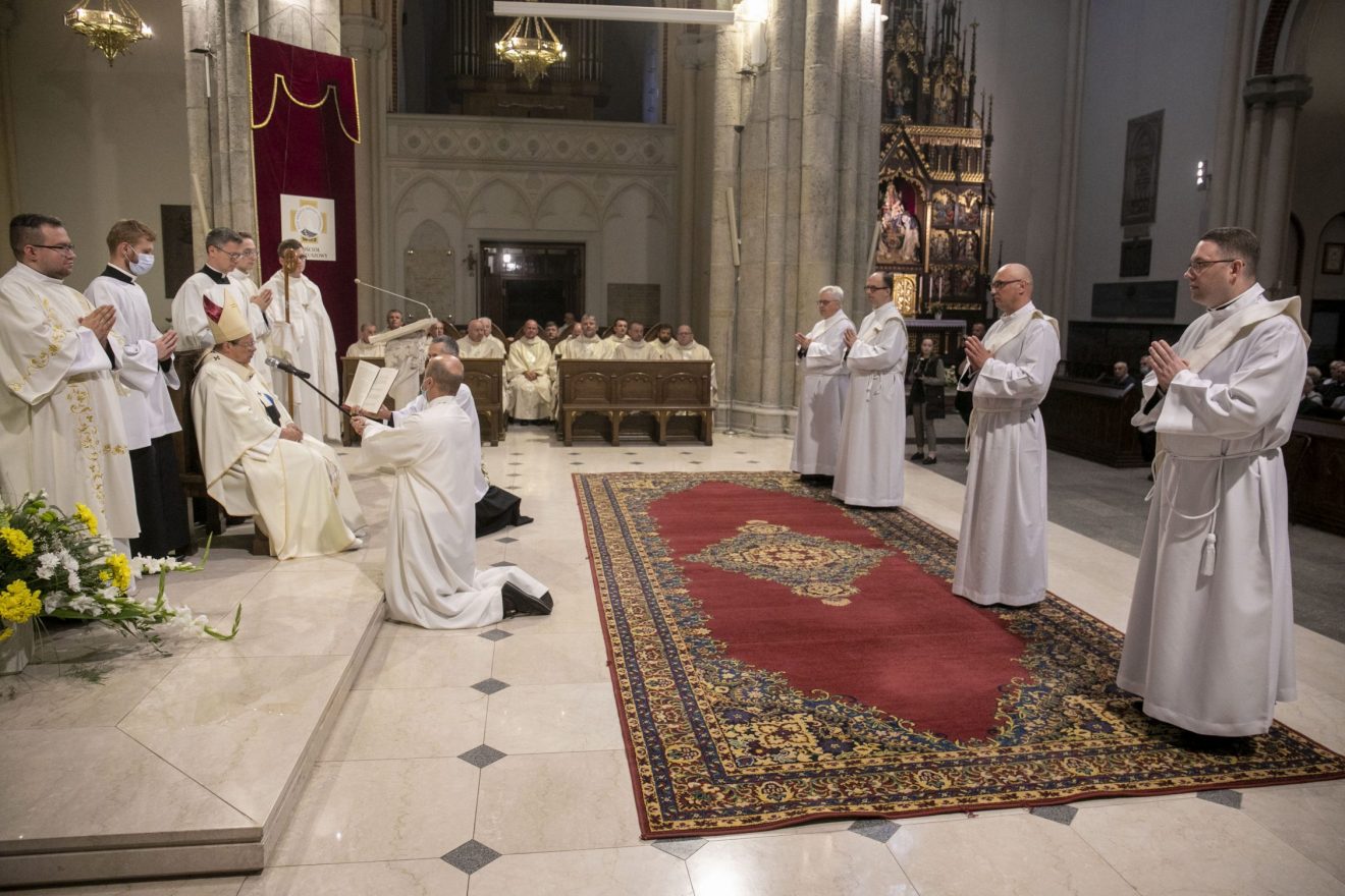 Fot. ks. Paweł Kłys– Wchodzenie dzisiaj w kapłaństwo jest aktem mężnej pokory. Nie można inaczej. Trzeba mieć w sobie męstwo i trzeba mieć w sobie pokorę w takim poczuciu, że zstępujemy w kapłaństwo. Noście to w sobie – mówił abp Grzegorz Ryś do wyświęcanych dziś absolwentów seminarium 35+.