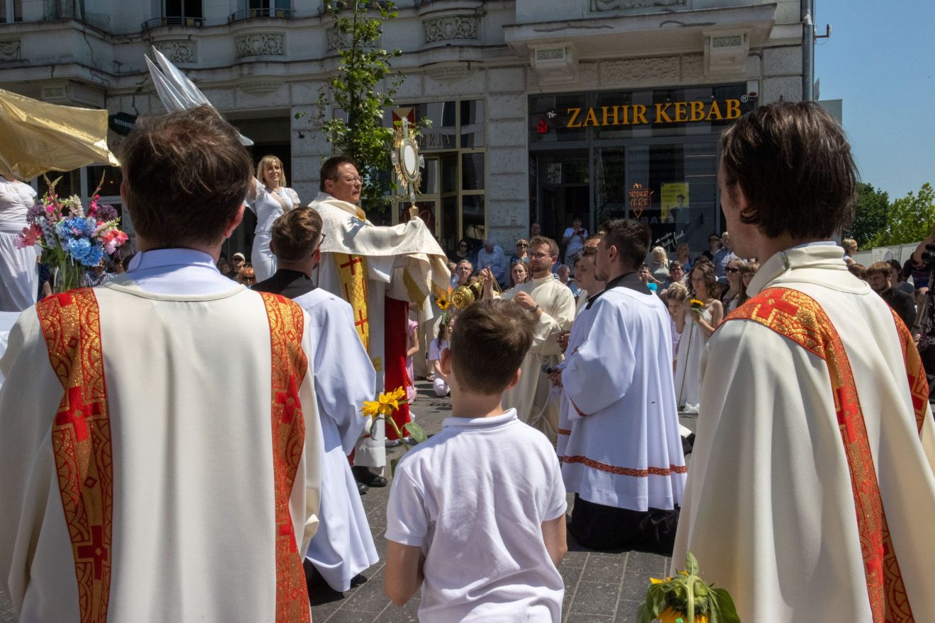 Procesję zakończyło odśpiewanie hymnu Te Deum Laudamus oraz błogosławieństwo Najświętszym Sakramentem na schodach łódzkiej katedry.