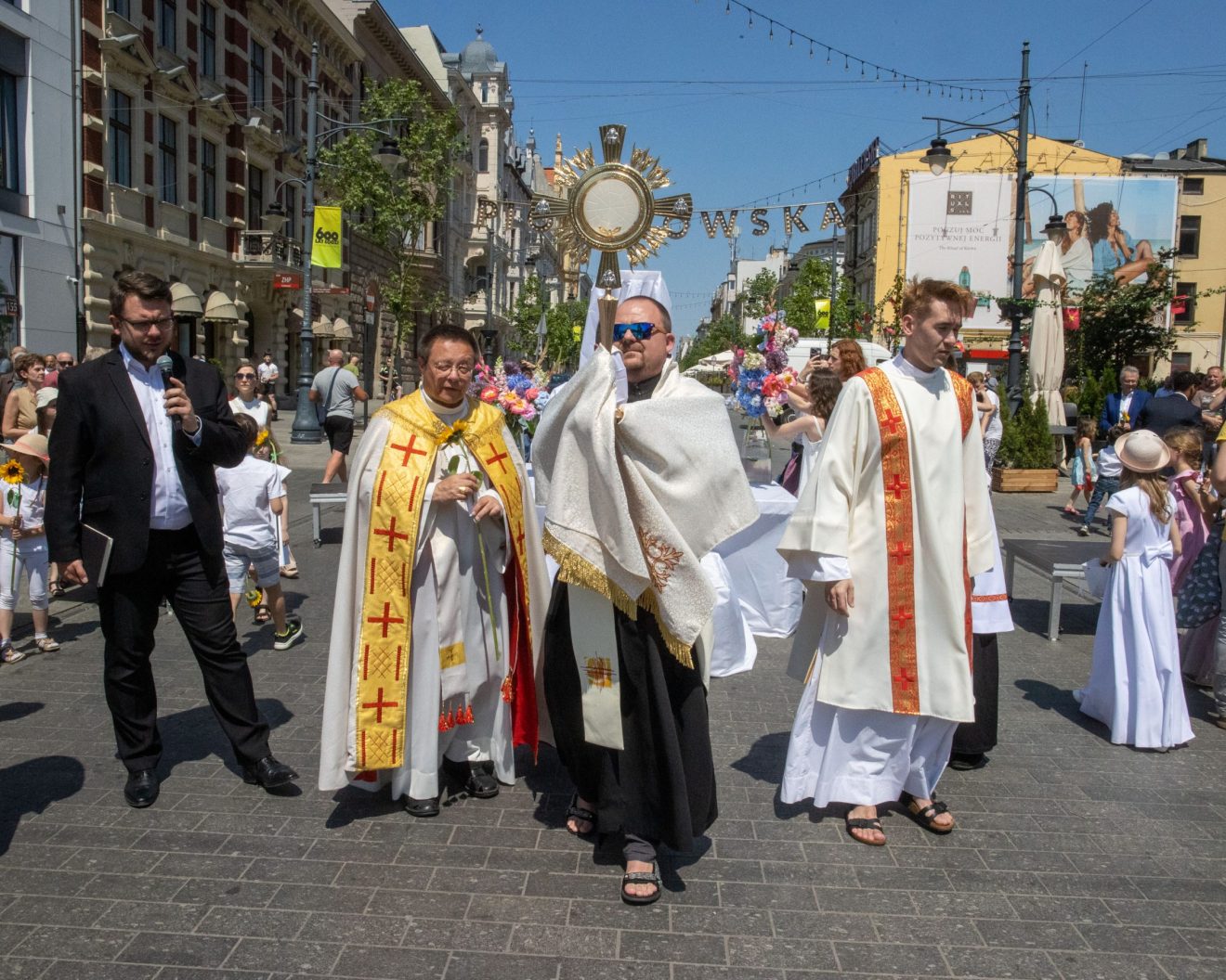Fot. ks. Paweł Kłys– Kult Eucharystii nie polega tylko na spożywaniu chleba – nawet tego szczególnego Chleba jakim Ona jest – mówił arcybiskup Grzegorz Ryś. Przez centrum Łodzi przeszła uroczysta Procesja Bożego Ciała, która zgromadziła we wspólnocie modlitwy duchownych i wiernych czterech parafii śródmiejskich: parafii p.w. Matki Boskiej Zwycięskiej, Podwyższenia Krzyża Świętego, Najświętszego Imienia Jezus oraz katedry p.w. św. Stanisław Kostki.