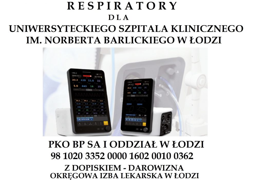 Respirator dla Uniwersyteckiego Szpitala Klinicznego im. Norberta Barlickiego w Łodzi. Bank PKO BP SA i Oddział w Łodzi