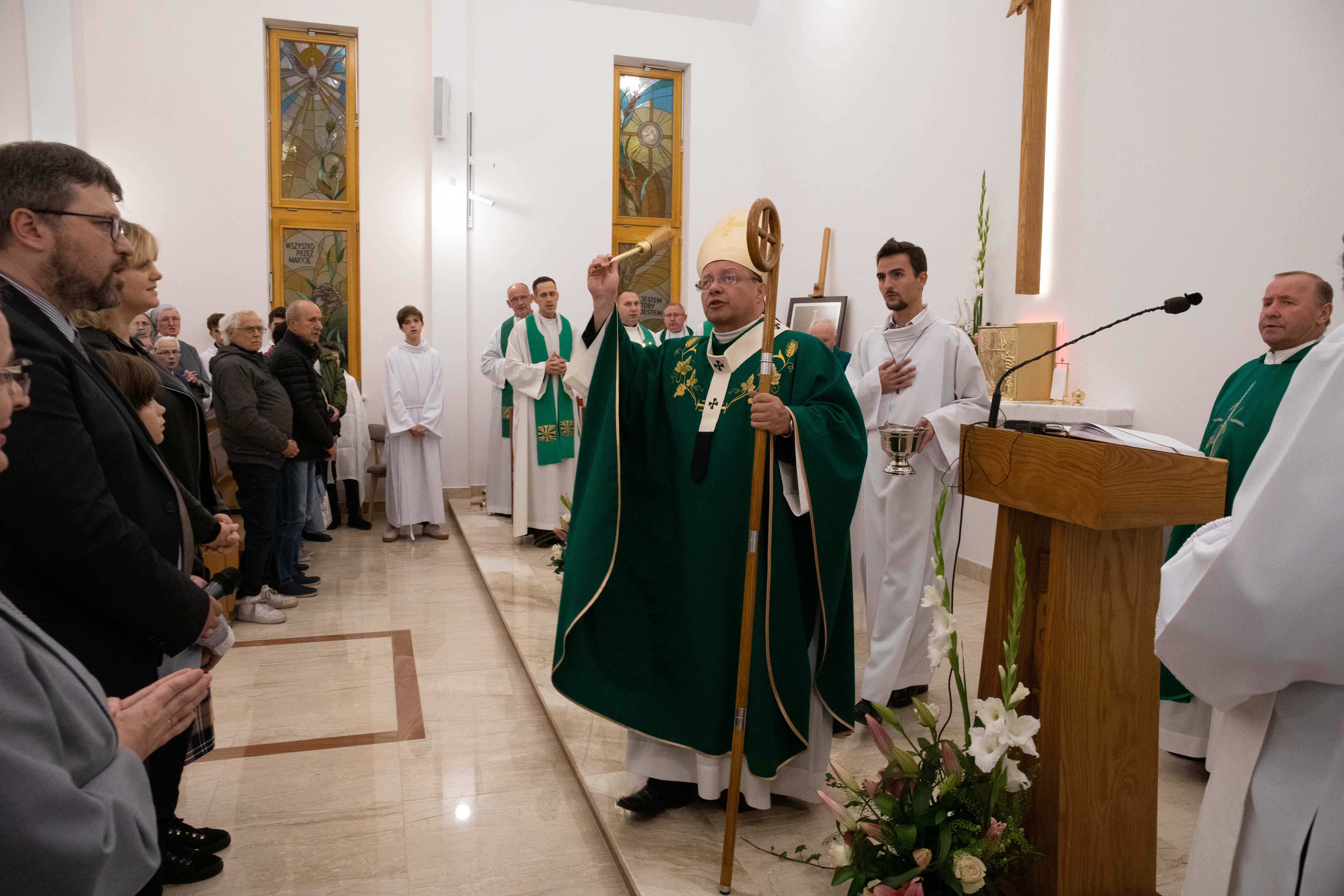 Na początku Mszy św., odpowiadając na prośbę Siostry Przełożonej abp Ryś pobłogosławił ołtarz i ambonę, a następnie poświecił kaplicę sióstr. Natomiast w pouczeniu pasterskim podkreślił, że dobrze jest mieć świątynię, ale trzeba uważać jak się do niej wchodzi, ponieważ w tej świątyni człowiek może spotkać Boga, ale może się z nim absolutnie rozminąć. Podobnie w tej świątyni człowiek może nawiązać sensowną relację z drugim, albo się kompletnie z tym drugim rozminąć. – Ostatecznie będzie tak, że jedni wyjdą stąd usprawiedliwieni, a drudzy nieusprawiedliwieni! – zaznaczył.