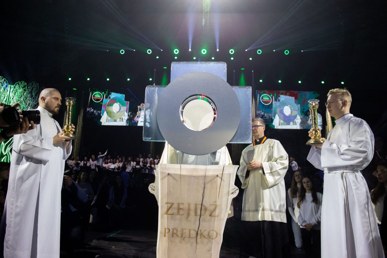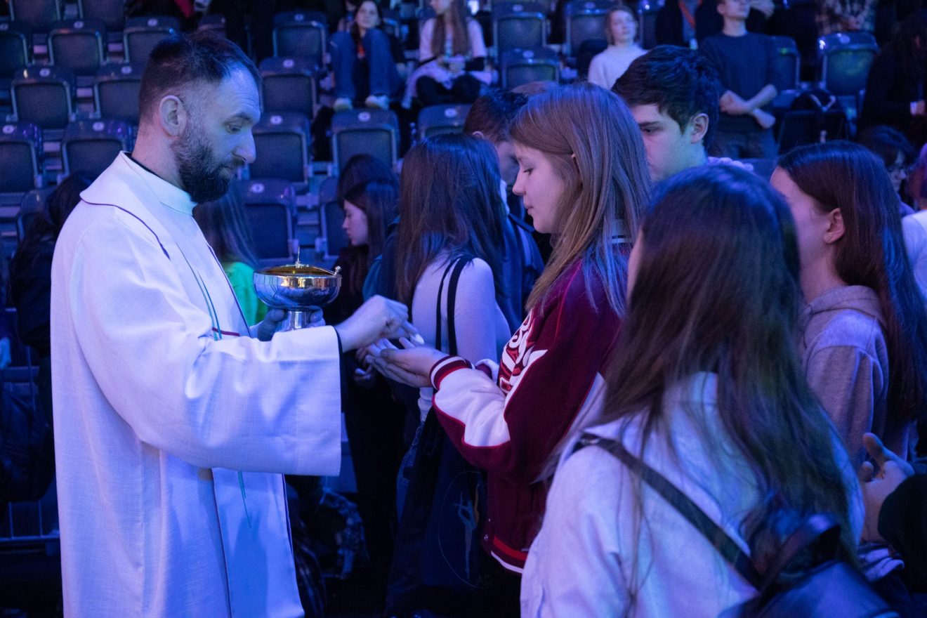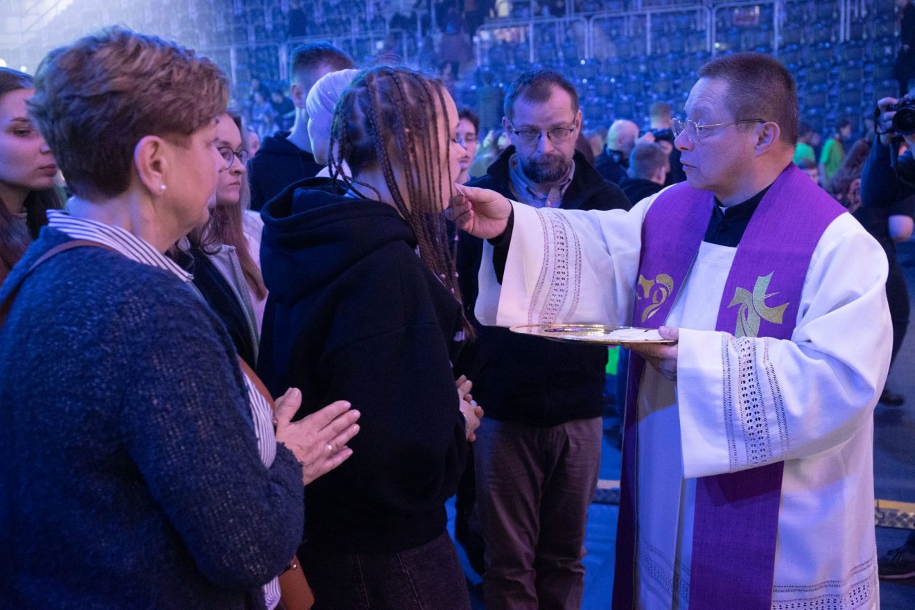 Po Adoracji Najświętszego Sakramentu uczestnicy Areny mogli przystąpić do Eucharystii, a ci którzy z jakiś względów nie mogli lub nie przystąpili do Sakramentu Pokuty podchodzili do kapłana prosząc o błogosławieństwo.