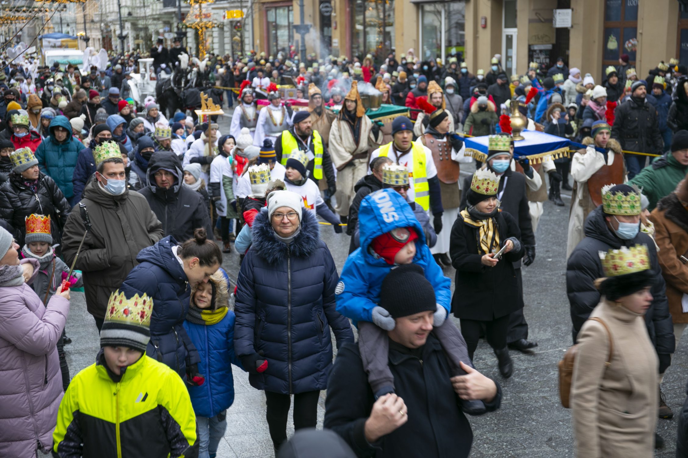 Fot. ks. Paweł Kłys– Bóg w Jezusie Chrystusie uczy dziś nas, że nie ma żadnego dobra, które by się rodziło bez trudu, bez umierania, bez zaparcia się siebie, bez wyniszczenia. To są te prawdy o Bogu w Jezusie, które objawiają nam Mędrcy ze Wschodu – mówił abp Grzegorz Ryś. Już po raz kolejny – po rocznej przerwie związanej z pandemią covid19 – w uroczystość Objawienia Pańskiego główną ulicą Łodzi przeszedł barwny Orszak Trzech Króli.