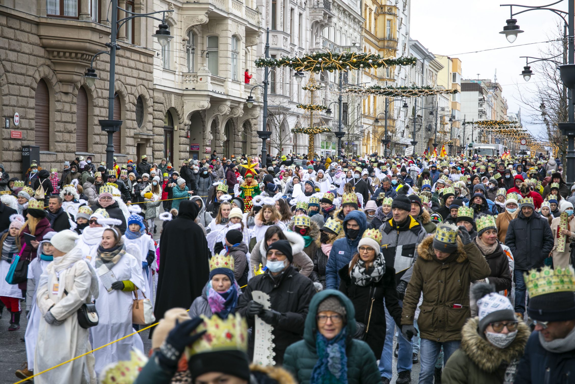 Po zakończeniu liturgii łódzki Orszak Trzech Króli przeszedł ulicą Piotrkowską z Placu Wolności do katedry p.w. św. Stanisława Kostki. Za gwiazdą podążały całe rodziny z dziećmi, a na ich głowach połyskiwały kolorowe korony, przygotowane przez organizatorów tegorocznego Orszaku.