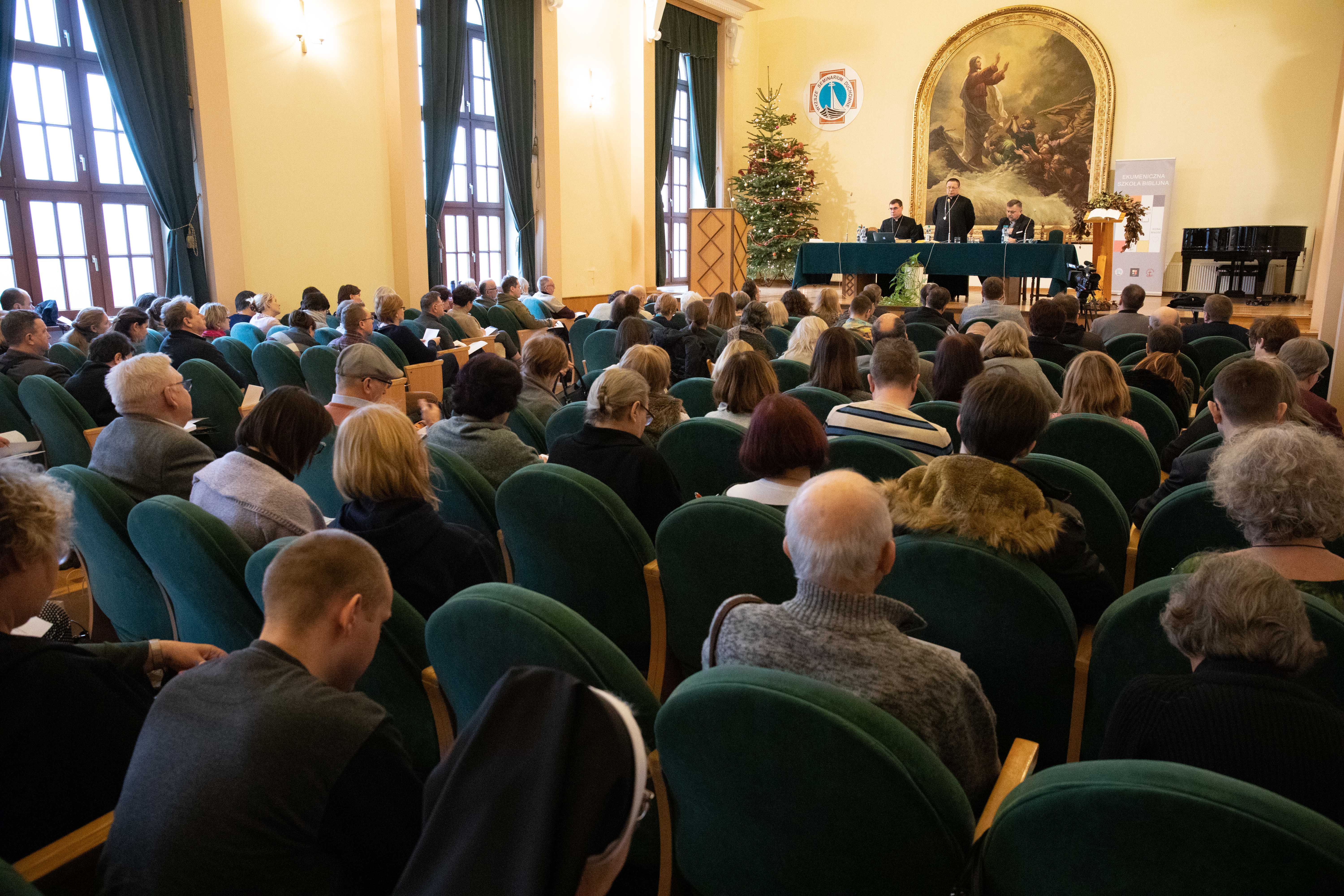 Spotkanie w auli Wyższego Seminarium Duchownego w Łodzi odbyło się już po raz czwarty. Metropolita łódzki podzielił się swoim doświadczeniem spotkania ze Słowem Bożym. Tłumaczył, że skrutacja jest modlitwą i jest czytaniem kontekstowym.