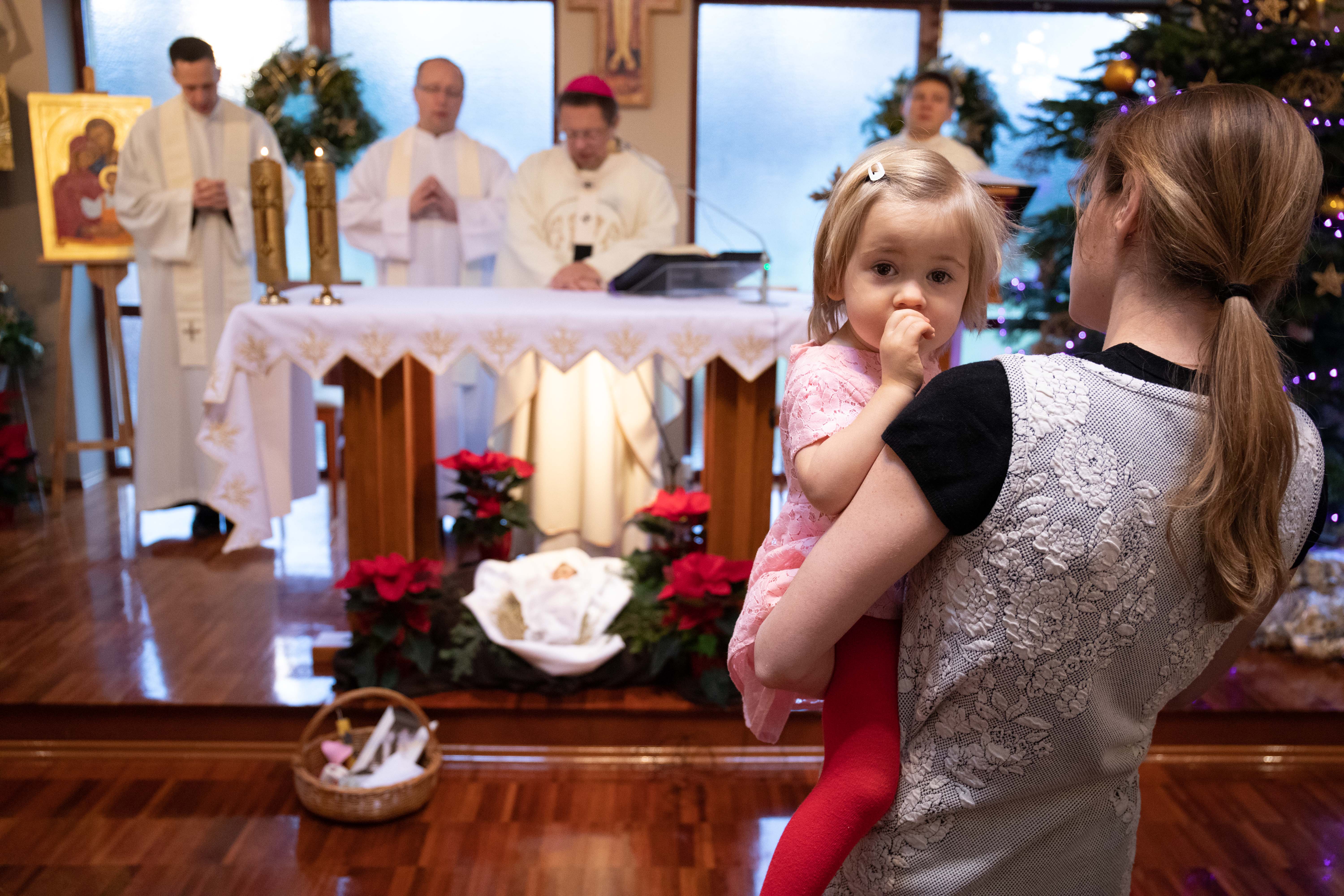 Fot. ks. Paweł Kłys– Patrzcie na Boga, który jest Osobą was kochającą, a nie patrzcie na Boga tylko jako na kogoś, kto wam daje przepisy. Oto właśnie cała mądrość Świąt Bożego Narodzenia – mówił abp Grzegorz Ryś. Co roku w Uroczystość Bożego Narodzenia metropolita łódzki udaje się z wizytą do łódzkiego Domu Samotnej Matki, aby tam spotkać się mamami i celebrować dla nich i ich pociech Mszę świętą.