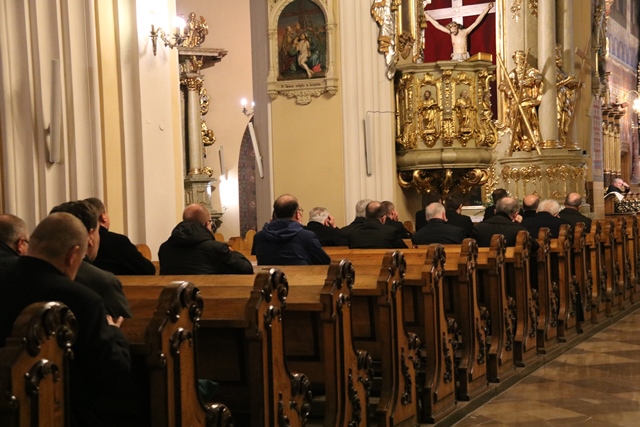 Kilkuset kapłanów z diecezji kaliskiej rozpoczęło Dzień Świętości Życia Kapłańskiego w katedrze św. Mikołaja w Kaliszu. Konferencję formacyjną wygłosił paulin o. Bogdan Waliczek, a po niej księża mieli możliwość skorzystania z sakramentu pokuty i pojednania oraz prywatnej adoracji Najświętszego Sakramentu.