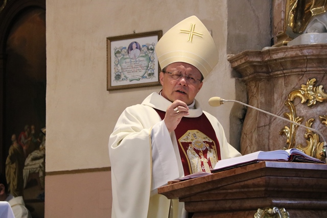 Arcybiskupa Grzegorza Rysia, biskupów, kapłanów i wiernych powitał bp Edward Janiak. – Proszę dzisiaj wszystkich o modlitwę za prześladowanych w Kościele. Po narodzeniu Chrystusa jeszcze nie było tak wielkich prześladowań w Kościele jakie są dzisiaj. Wielu ludzi na świecie traci życie za przyznanie się do Chrystusa. Są męczennikami. Chcemy dzisiaj z tego miejsca o nich pamiętać – zaznaczył biskup kaliski.