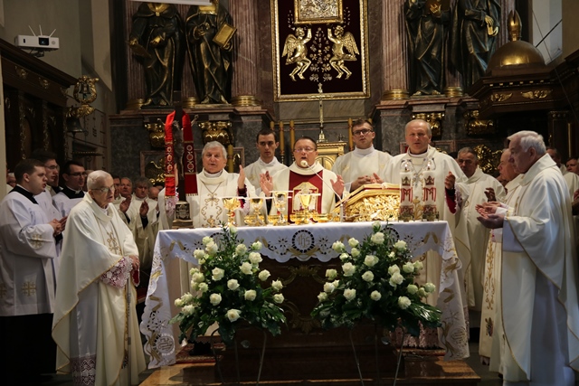Po nabożeństwie w katedrze kapłani procesyjnie przeszli do Narodowego Sanktuarium św. Józefa na Eucharystię. Mszy św. przewodniczył abp Grzegorz Ryś, metropolita łódzki w asyście biskupa kaliskiego Edwarda Janiaka, biskupa pomocniczego Łukasza Buzuna, bpa seniora Zdzisława Fortuniaka z Poznania, bpa seniora Stanisława Napierały, bpa seniora Teofila Wilskiego i zgromadzonych księży.