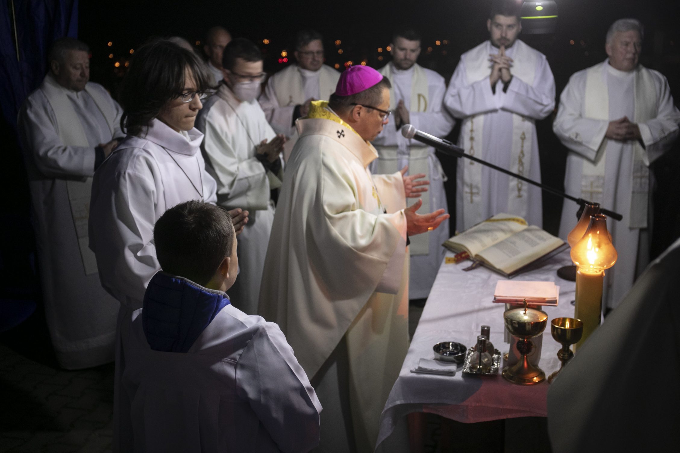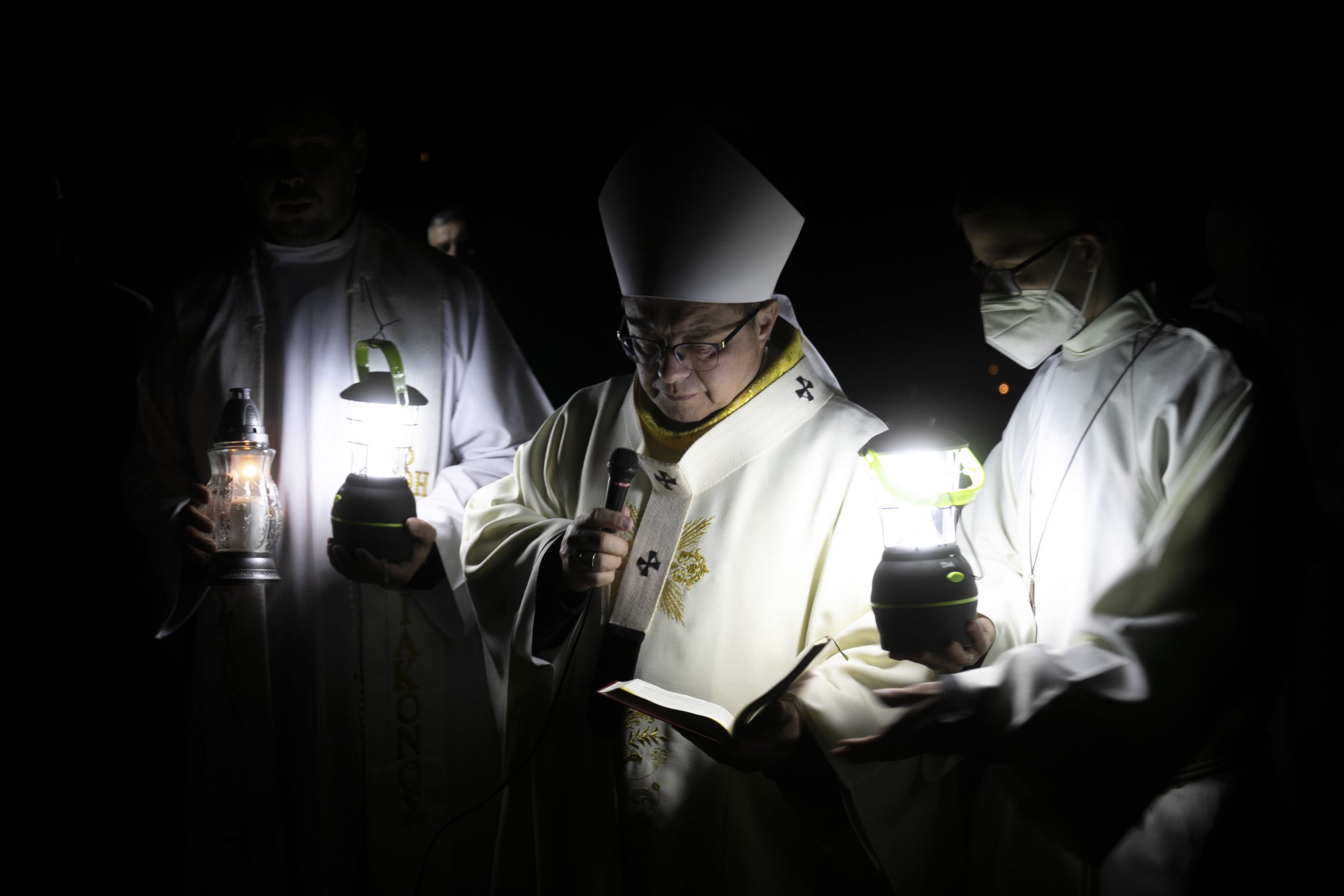 Fot. ks. Paweł KłysJuż po raz trzeci – w uroczystość Wszystkich Świętych – metropolita łódzki arcybiskup Grzegorz Ryś przewodniczył wieczornej Mszy Świętej na cmentarzu dla osób bezdomnych przy ul. Zakładowej 4, a po jej zakończeniu poprowadził procesję żałobną po cmentarzu. -Świętość nie bierze się tylko stąd, że człowiek napnie duchowe muskuły i ćwiczy. Sam się nikt nie wydoskonali. Świętość bierze się ze spotkania człowieka z Bogiem, z tego, że przyjmujemy Jego spojrzenie ale też patrzymy na Niego i to nas zmienia – powiedział metropolita łódzki.