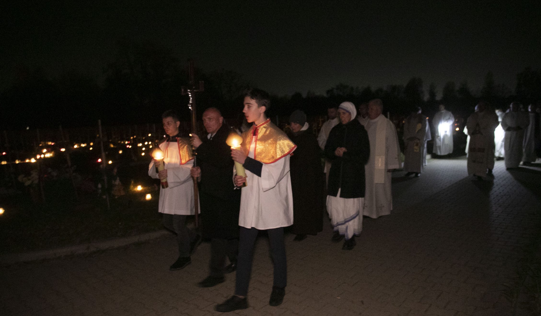 Po zakończeniu Eucharystii abp Ryś poprowadził procesję żałobną po cmentarzu, która została połączona z koronką do Bożego Miłosierdzia. Przy każdej z pięciu stacji łódzki pasterz po modlitwie postawił świecę na grobie, na którym nie palił się żaden znicz.