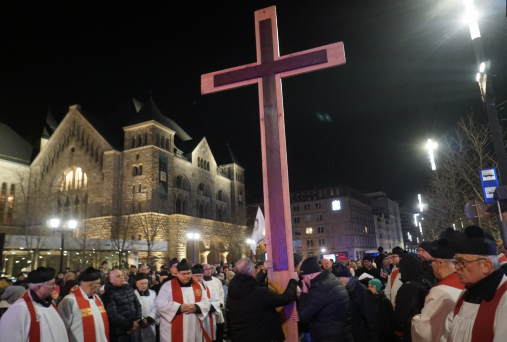 „Droga krzyżowa to droga życia. Są na niej upadki, bohaterzy niosący brzemiona innych, najbliżsi uczniowie uciekający od cierpiącego Jezusa, ludzie płaczący nad grzechami innych, swoich grzechów nie zauważając. Jezus dzieli się z nami swoim krzyżem. Zaprasza do pójścia na Nim. Mówi: «Jeżeli chcesz, pójdź za mną»” – podkreślił na zakończenie nabożeństwa ks. dr Dawid Stelmach, przewodniczący Komisji Misyjnej i Referatu Misyjnego.