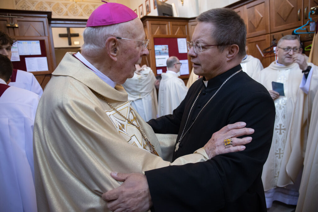 Hierarcha zwracając się do arcybiskupa seniora powiedział – Widziałem księdza arcybiskupa na fotografiach sprzed 45 lat, kiedy ksiądz arcybiskup był wyprostowany, wyższy o głowę od wszystkich z siłą, którą widać, emanuje z każdego ruchu. Księże arcybiskupie chcę powiedzieć – wtedy księdza arcybiskupa nie znałem, ale dziś znam i chcę powiedzieć, że dzisiaj Pana Jezusa widać z księdza arcybiskupa jeszcze bardziej. Dzisiaj moc Pana Jezusa w księdzu arcybiskupie jest absolutnie przejrzyste, widoczna, dlatego, że wydaje się ksiądz arcybiskup słabszy, i że iluś rzeczy nie może, i że nie jest tak wyprostowanym jak struna i jest najwyższy z całego zgromadzenia. Dziś widać Pana Jezusa bardzo mocno przez księdza arcybiskupa. Przy tak osłabionych własnych siłach, siły Pana Jezusa dochodzą do absolutnej pełni – podkreślił hierarcha.