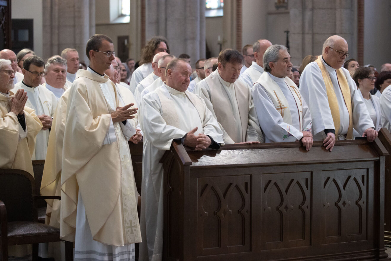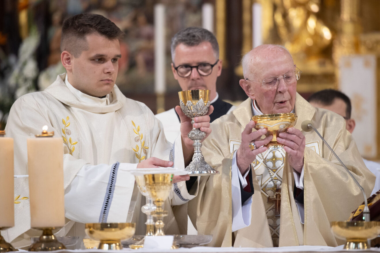 Podczas Eucharystii połączonej z uwielbieniem kard. Grzegorz Ryś, biskupi, duchowni diecezjalni i zakonni, siostry zakonne, przedstawiciele ruchów i stowarzyszeń działających na terenie Archidiecezji łódzkiej oraz wierni świeccy – słowem cały Kościół Łódzki – dziękował Bogu za dar posługi Arcybiskupa seniora prosząc dla niego o obfite łaski i Boże błogosławieństwo.